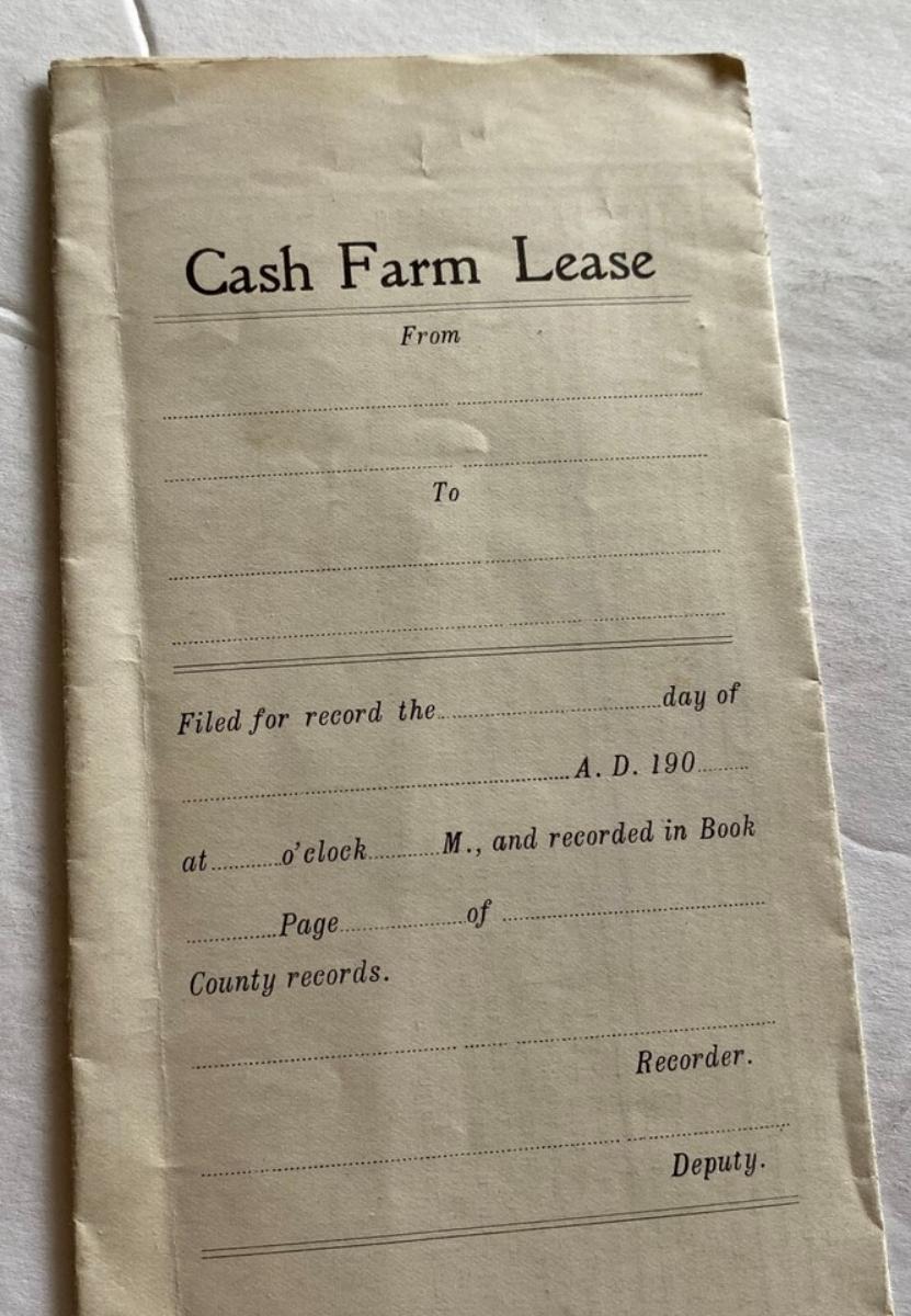 1905 CASH RENT FARM LEASE DAWSON DALLAS COUNTY IOWA