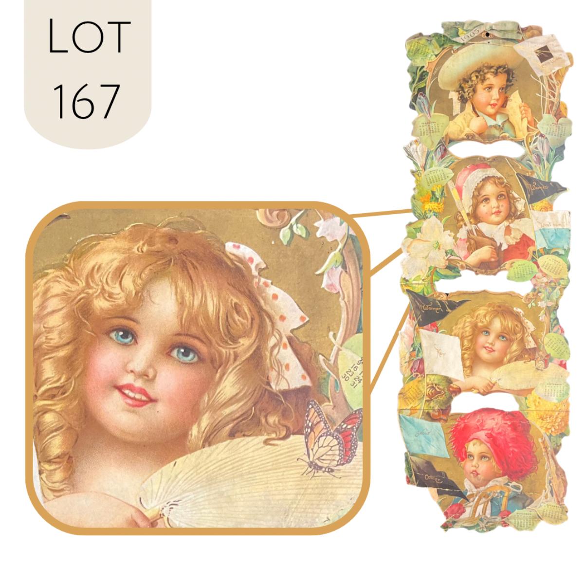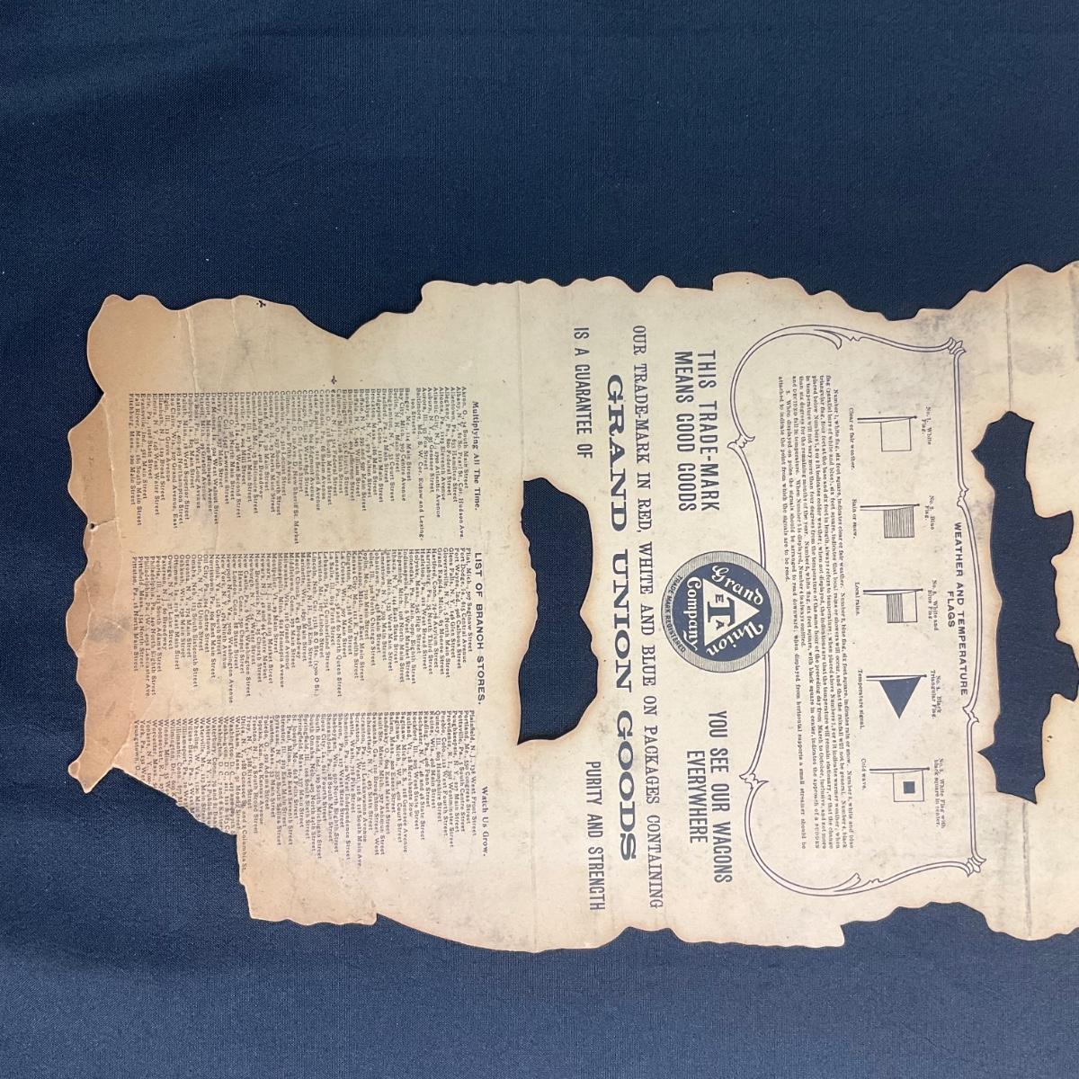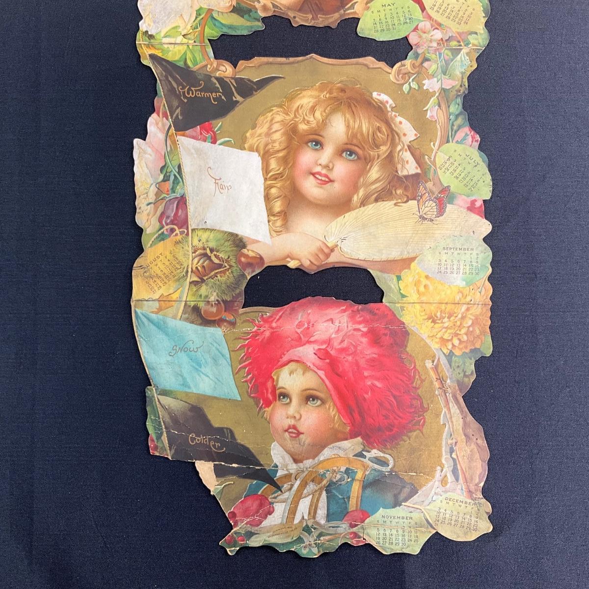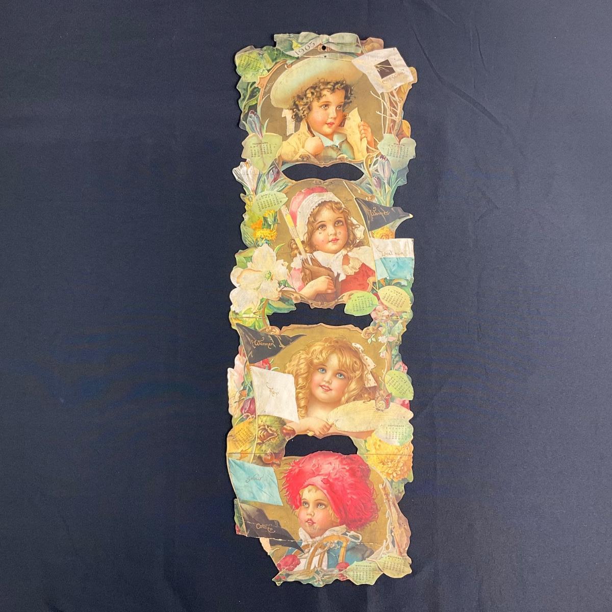 This calendar was produced to promote the Grand Union Tea Company. The calendar features Four young girls in different seasonal garb with flowers. This one-sheet is missing October from the bottom left corner - but is otherwise complete. The artwork from the calendar is accredited to Frances Brundage, copyright 1904 Grand Union Tea Co. This calendar measures 9 7/8" x 29". **|** Please see photos for details and condition. ::: Shipping is available on this lot. If you require shipping you must let us know at the close of the auction. We will coordinate with you after the item has been won. Shipping fees will include insurance up to or exceeding the value of all items being mailed. If you have any questions regarding this lot please contact the auctioneer either via this website, by direct email or by phone. PICK UP TIMES and other important information can be found in the TERMS and DESCRIPTION of the auction. Please take a look for pertinent information. Thanks!