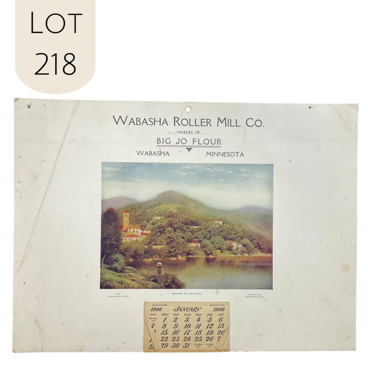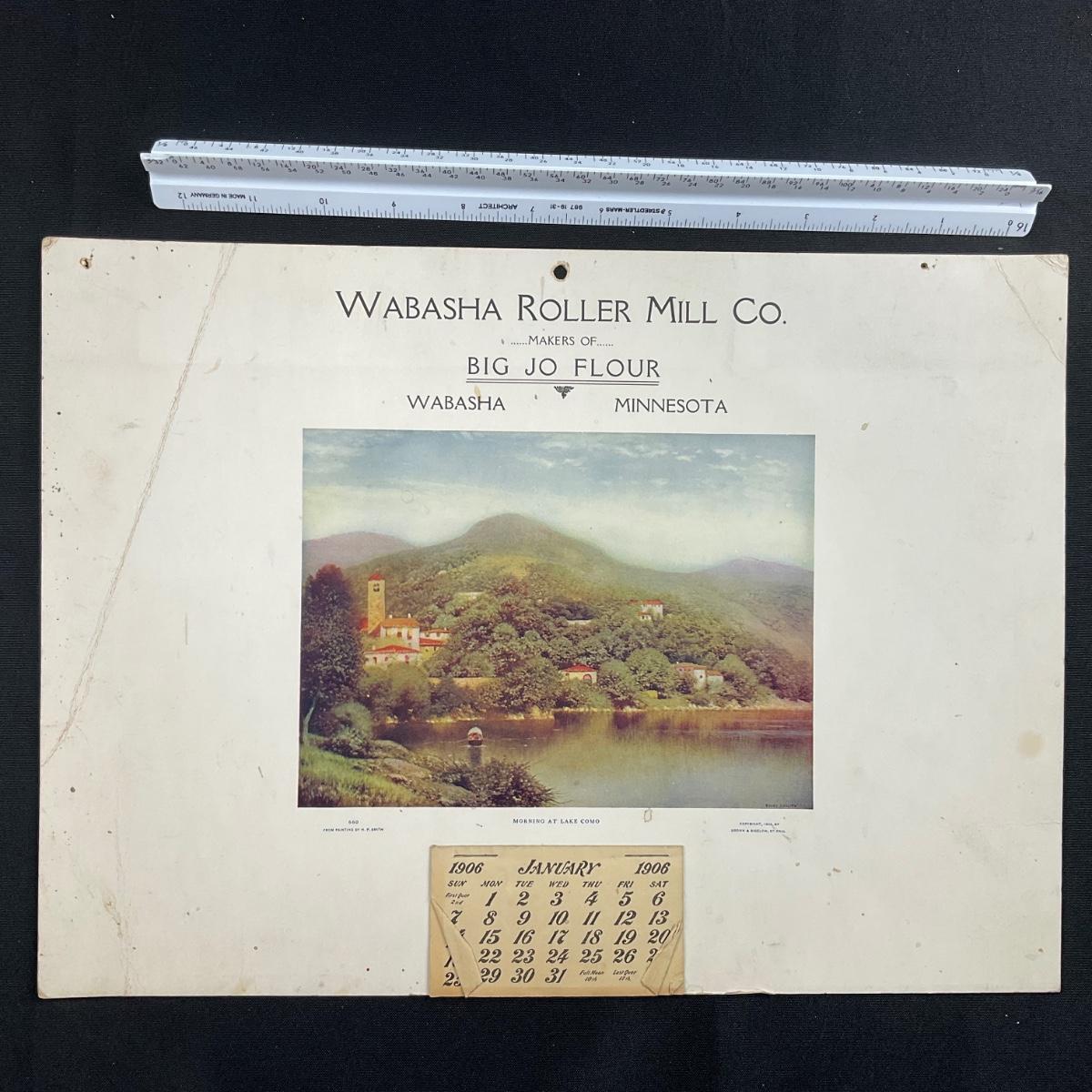 This calendar was produced by Brown & Bigelow of St Paul Minnesota. The calendar features a hillside and lake landscape titled "Morning at Lake Como" original painting by H P Smith. This calendar is complete, showing January 1906. This calendar measures 14 3/4" x 10 7/8". **|** Please see photos for details and condition. ::: Shipping is available on this lot. If you require shipping you must let us know at the close of the auction. We will coordinate with you after the item has been won. Shipping fees will include insurance up to or exceeding the value of all items being mailed. If you have any questions regarding this lot please contact the auctioneer either via this website, by direct email or by phone. PICK UP TIMES and other important information can be found in the TERMS and DESCRIPTION of the auction. Please take a look for pertinent information. Thanks!