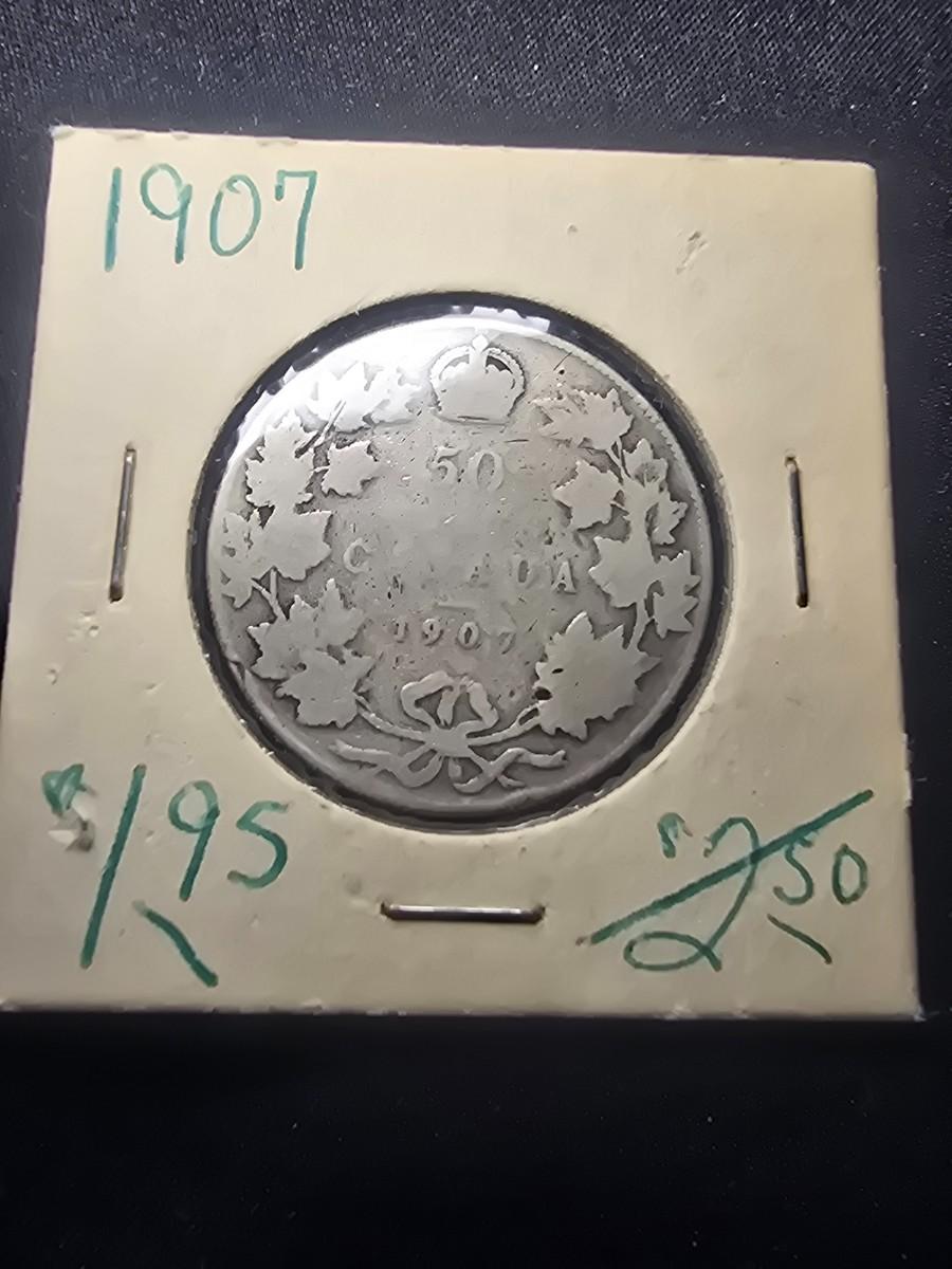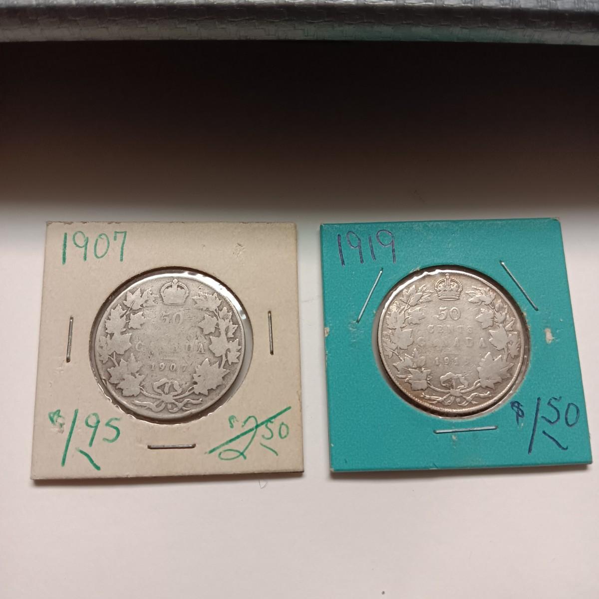 1907 CANADIAN SILVER HALF DOLLAR & 1919 CANADIAN HALF DOLLAR