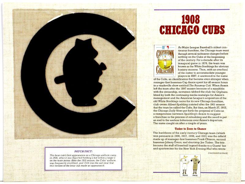 1908 CHICAGO CUBS BASEBALL TEAM PATCH - Cooperstown Collection by Willabee & Ward