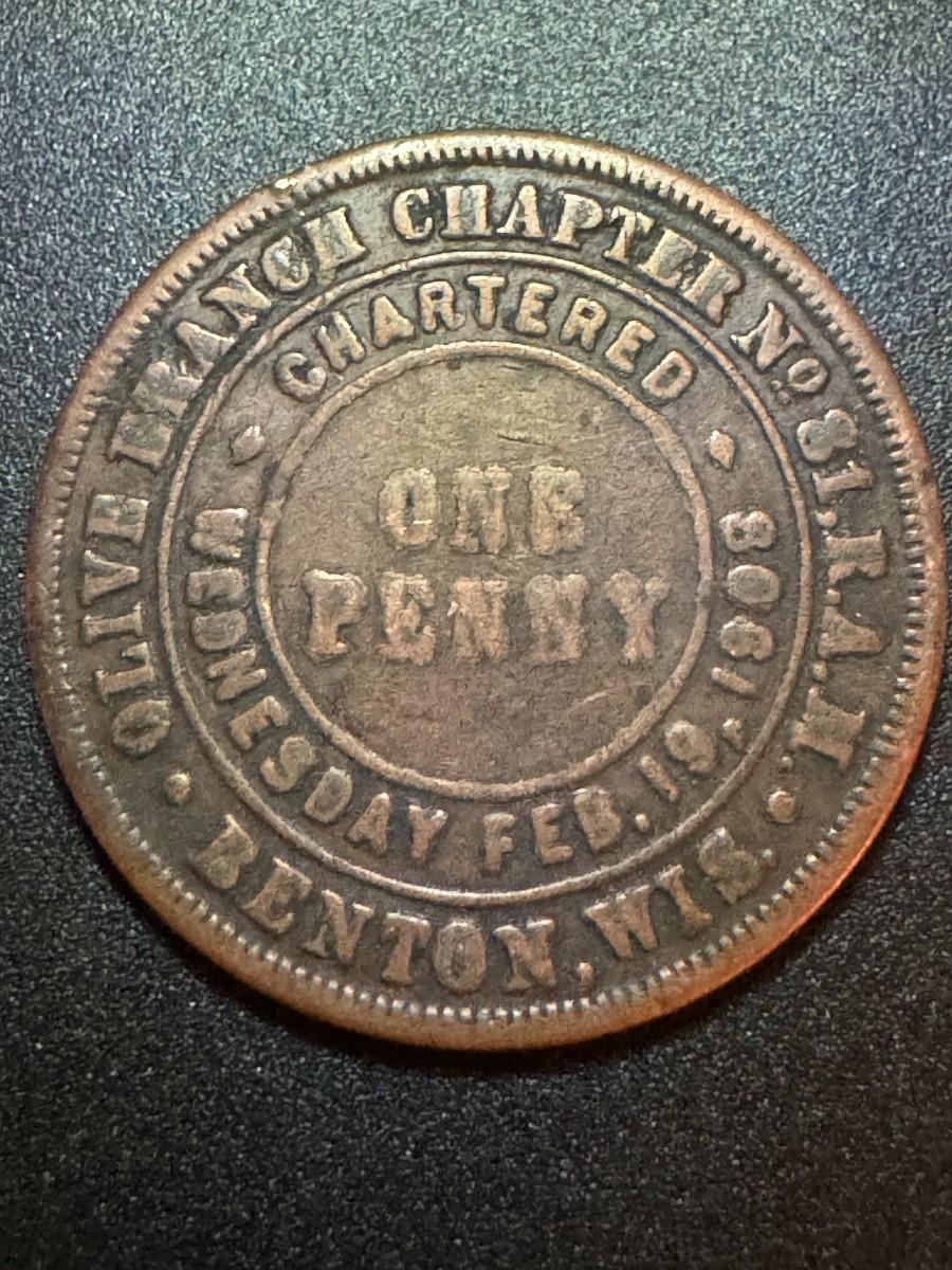 1908 Olive Branch Chapter No 81, R.A.M - Benton, WIS - One Penny