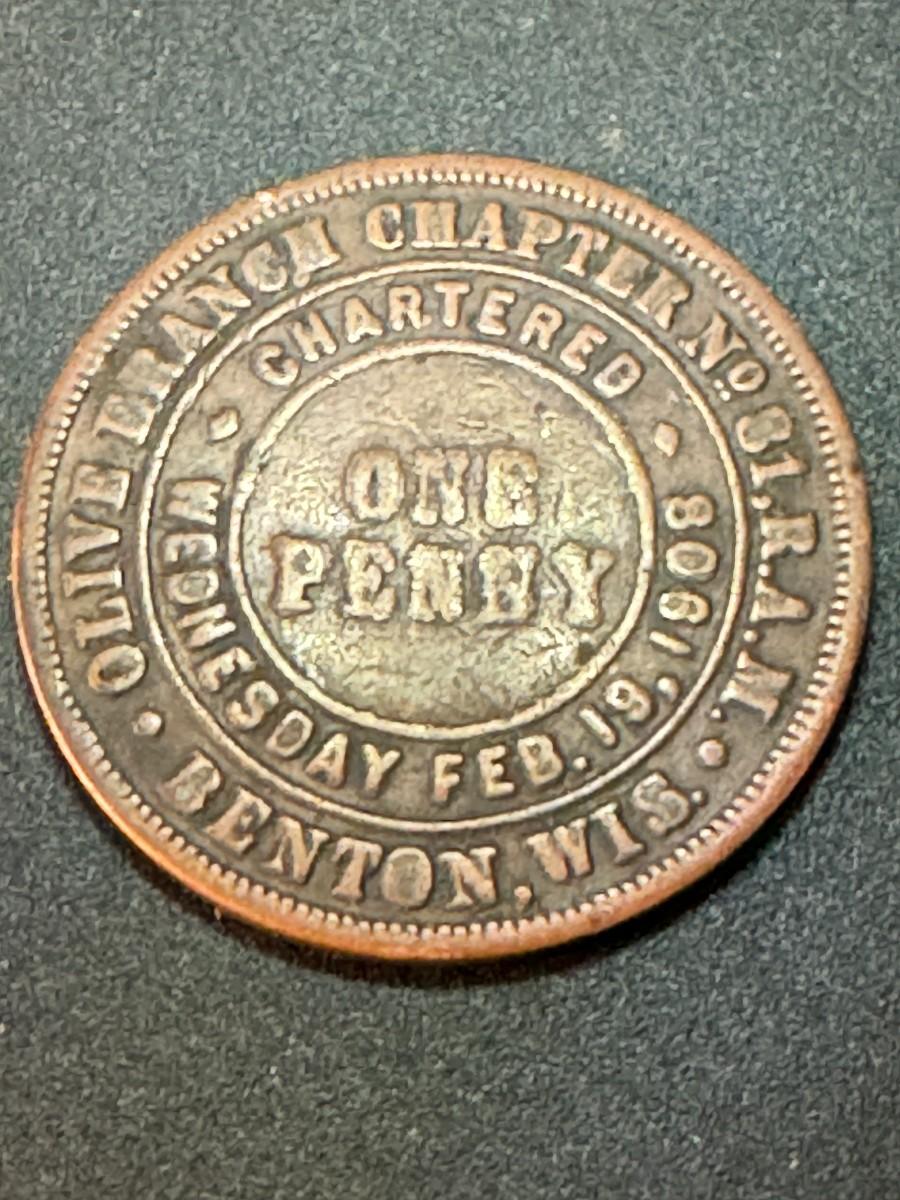 1908 Olive Branch Chapter Token Benton, Wis - One Penny