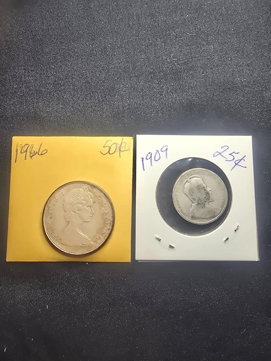 1909 CANADIAN QUARTER & 1966 CANADA HALF DOLLAR