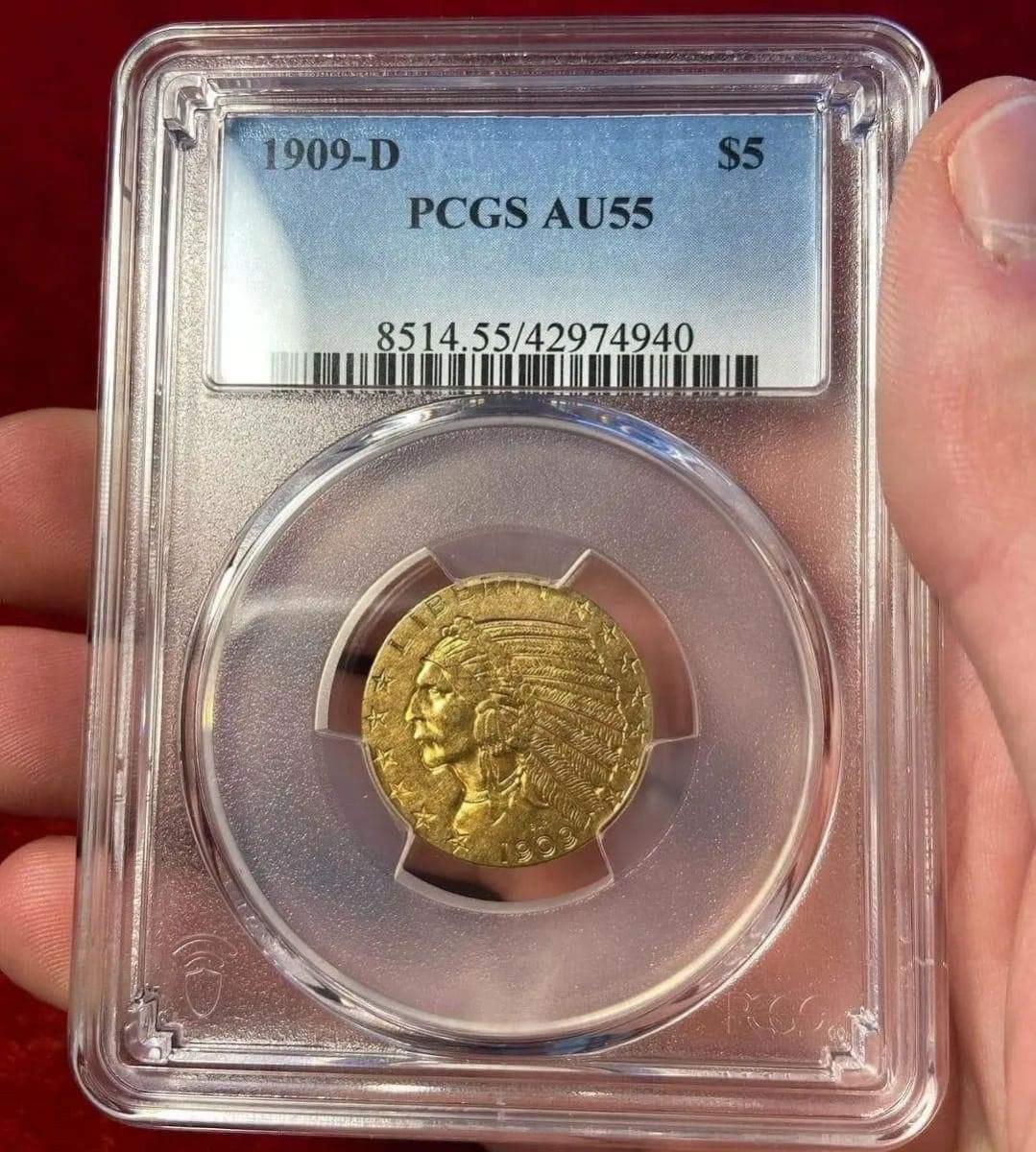 1909 D Gold coin 5 $ gold coin AU 55 Reserve set