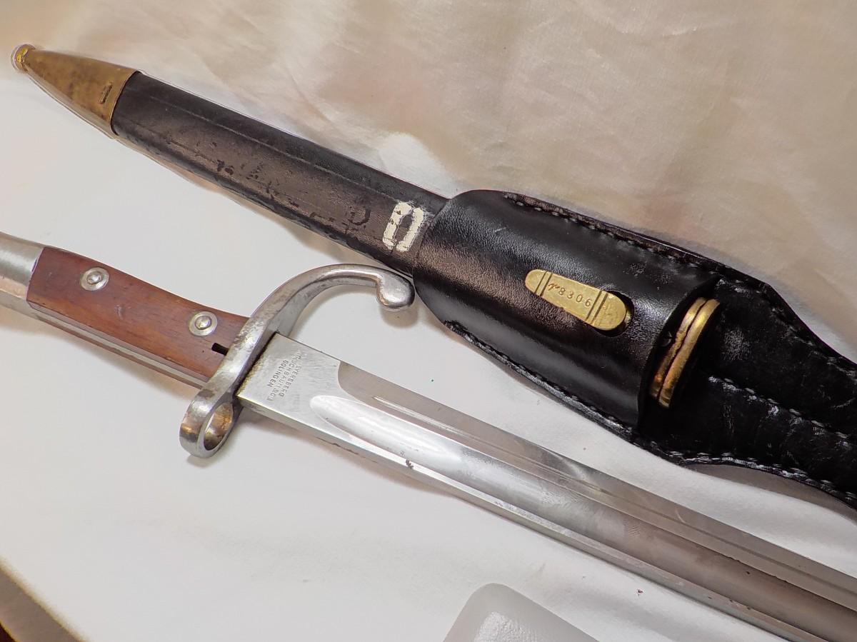 1909 Modelo, Argentina K2495 Mauser Bayonet, Scabbard & frog. Est.$175 to $400.