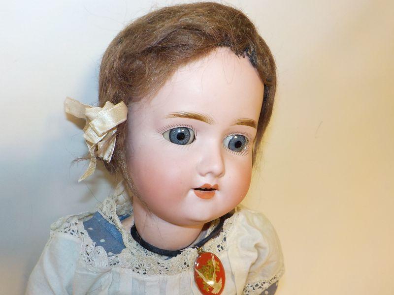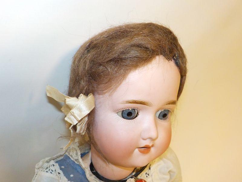 Stunning collectable Antique German doll with glass eyes real hair and markings.
