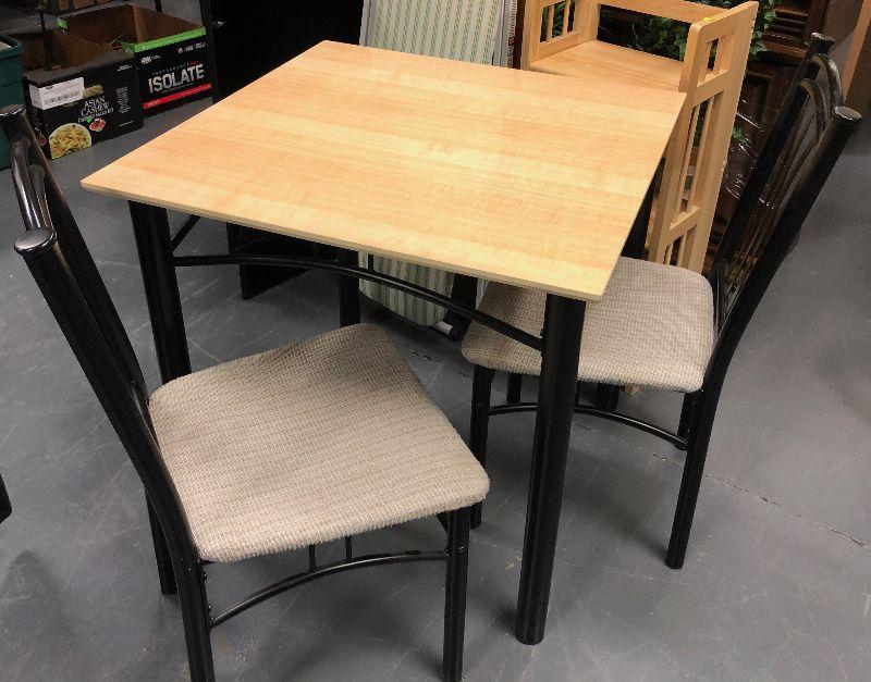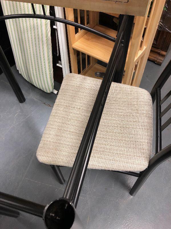 Table is 30" Square. Top needs reattached. Chairs need cleaned