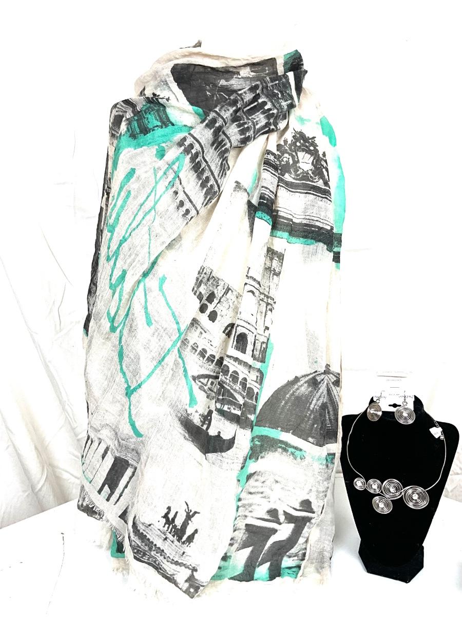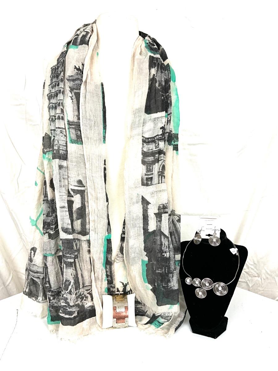 191 Italy Shawl , Necklace and Earring Set with Bronze Bracelet