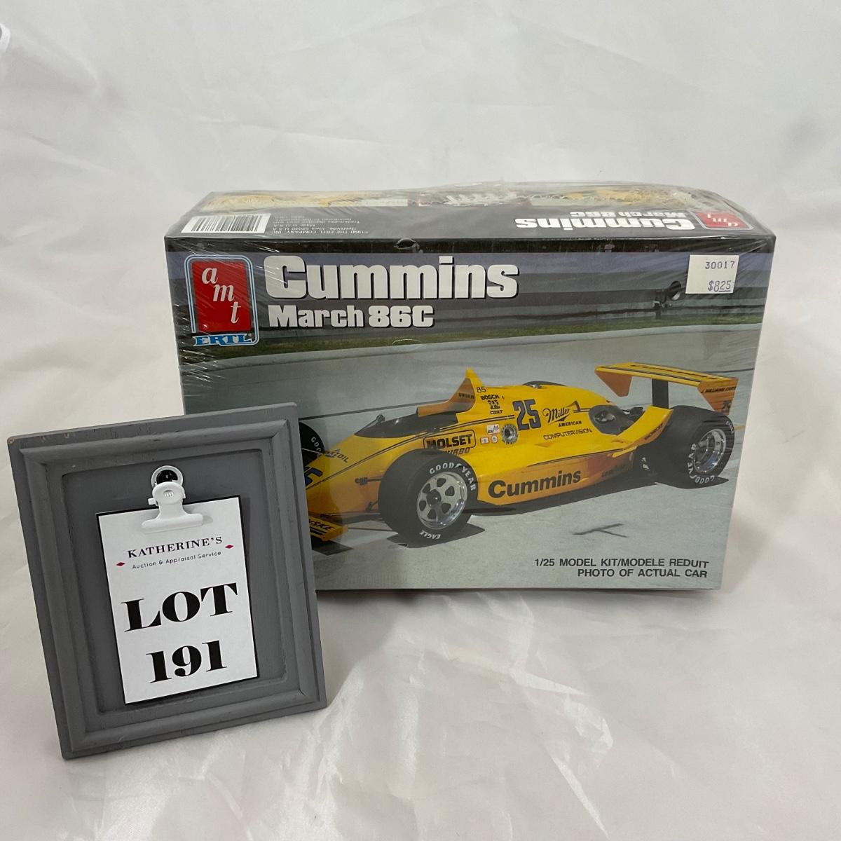 One 1:25 Scale model kit of the Reduit Cummins March 86C Sealed in box. Please see photos for details and condition. ::: Shipping is available on this lot. If you require shipping you must let us know at the close of the auction. We will coordinate with you after the item has been won. Shipping fees will include insurance up to or exceeding the value of all items being mailed. If you have any questions regarding this lot please contact the auctioneer either via this website, by direct email or by phone. PICK UP TIMES and other important information can be found in the TERMS and DESCRIPTION of the auction. Please take a look for pertinent information. Thanks!