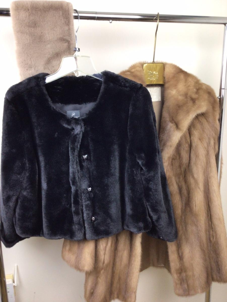 Millers fur coat is not sized but measures 19” from shoulder to shoulder, 20” from armpit to armpit and 35” long. The other pieces in this lot are faux fur-Adrienne Papell faux jacket-medium and Chico’s faux fur scarf-os.