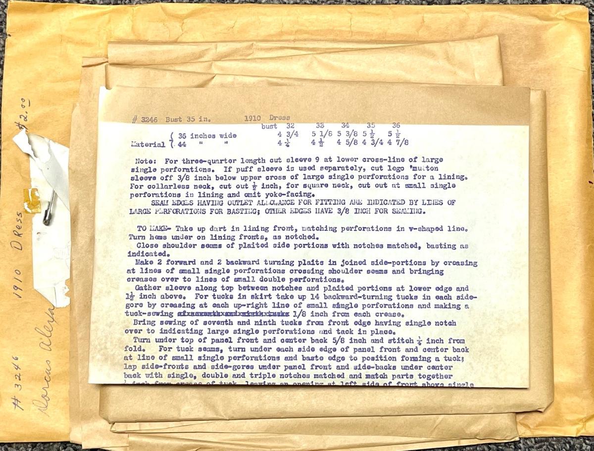 1910 Dress Pattern No. 3246 Dorcus Alexa. All pieces verified.