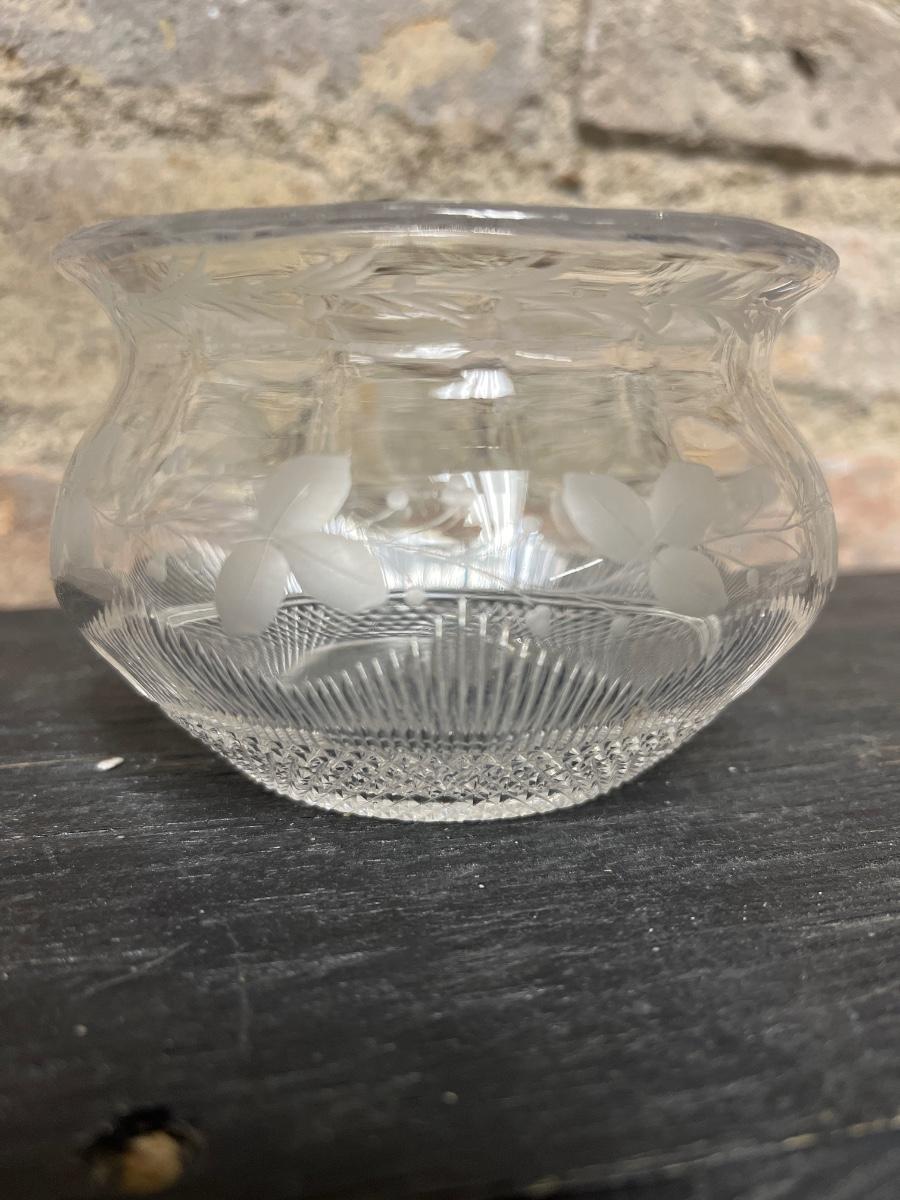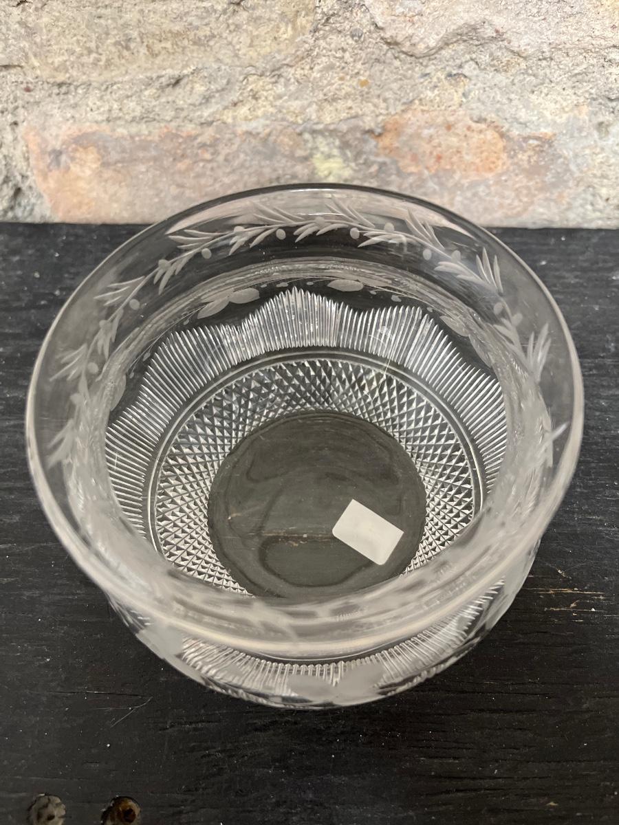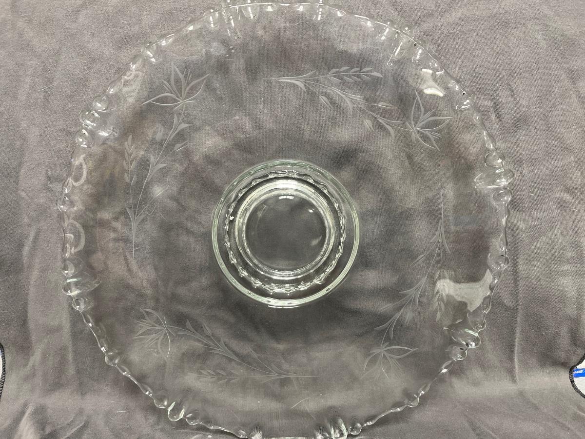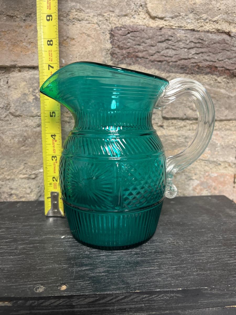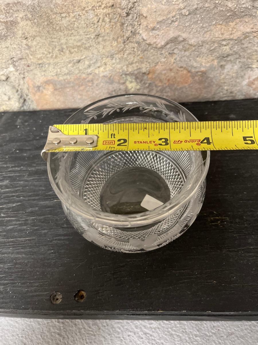 Etched cake plate Fostoria?, fused glass pansy dish, MOMA repro pitcher, Sinclair cut rose bowl. 1910 was an avid and discerning collector. There are multiple lots from 1910 in this auction, each unique and interesting.