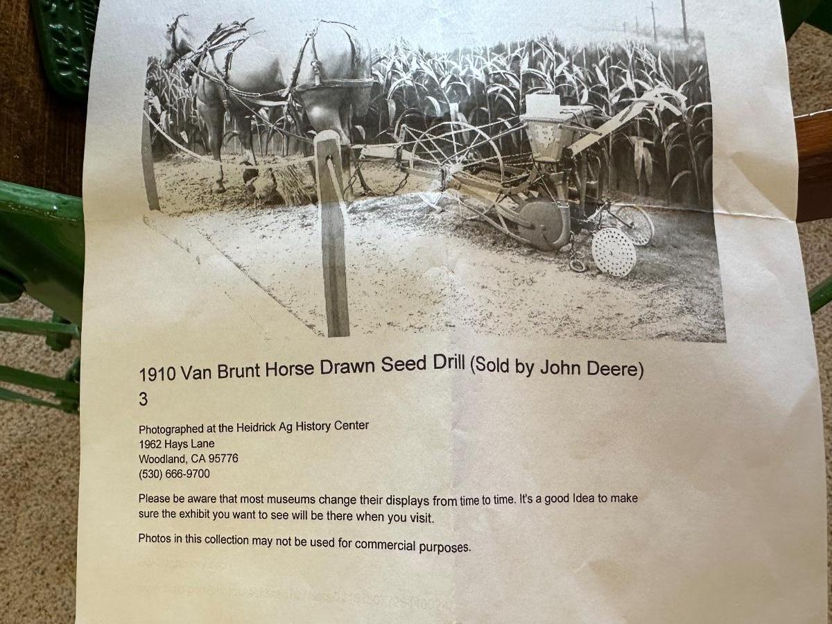 1910 VAN BRUNT HORSE DRAWN SEED DRILL (SOLD BY JOHN DEERE)