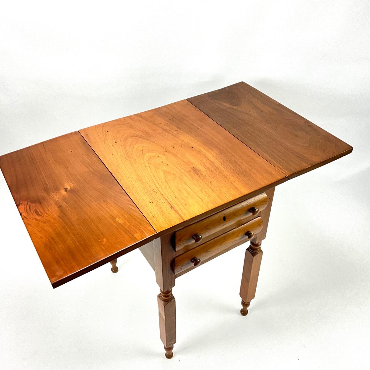 1910 Walnut 2 Drawer Drop Leaf Side Table
