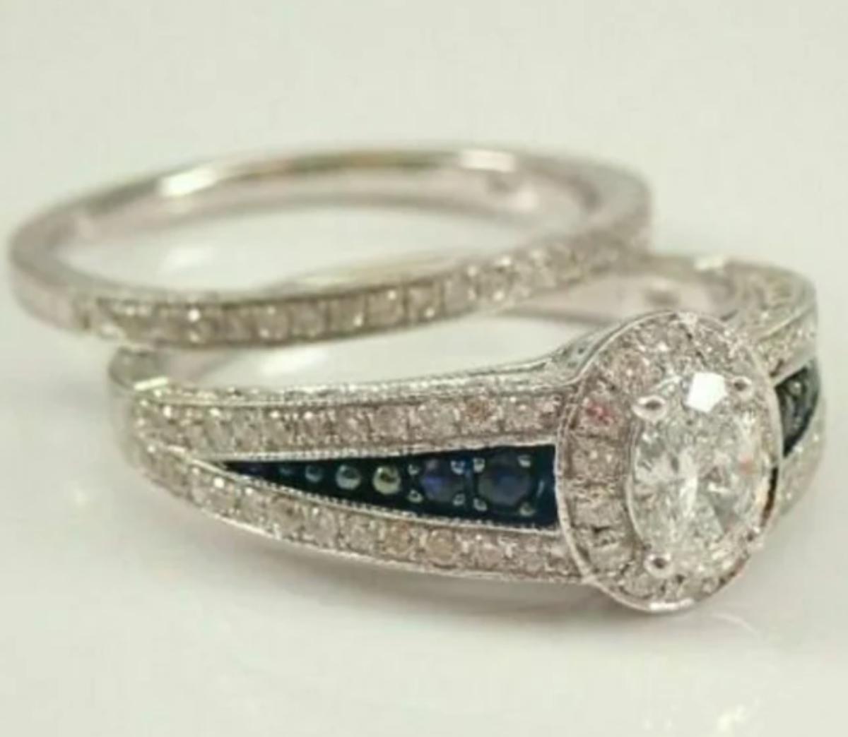 1910s Vintage 2.00ct Oval Cut Diamond Bridal Set