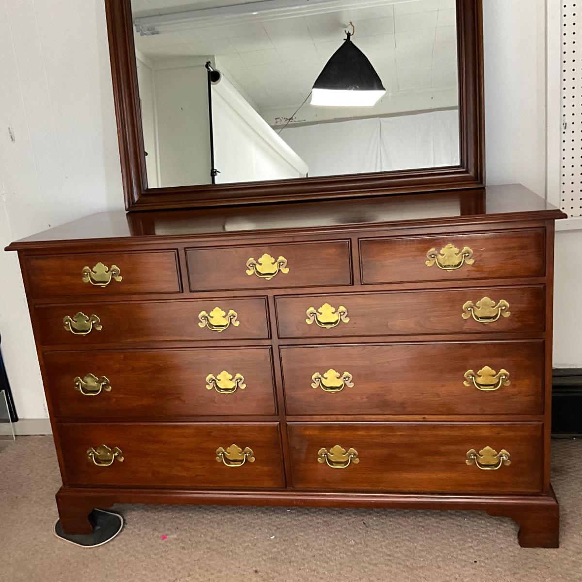 1911 Henkel Harris Cherry 9 Drawer Dresser & Mirror