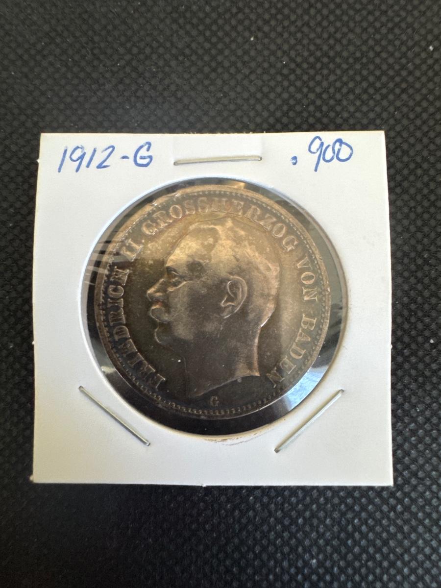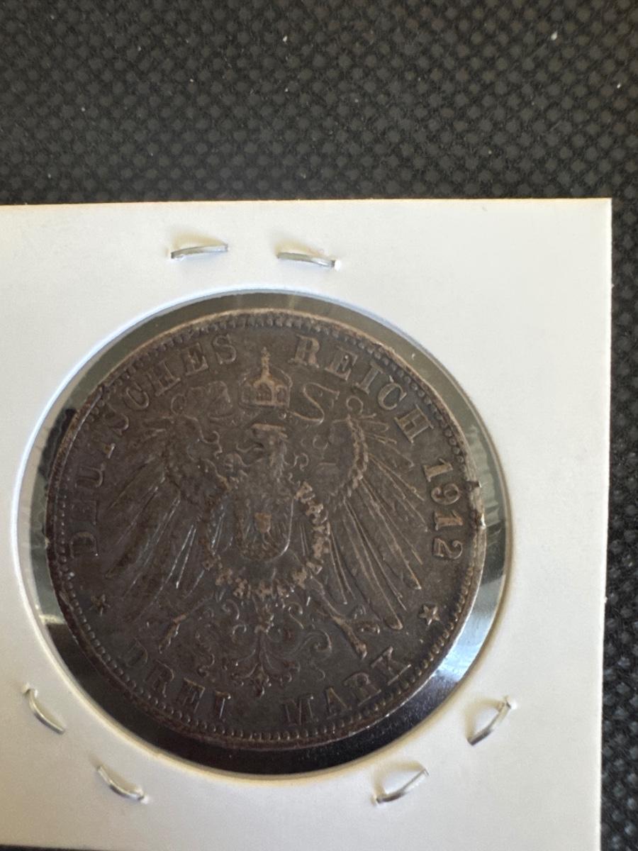 1912 (G) German Mark 3 Coin - 90% Silver
