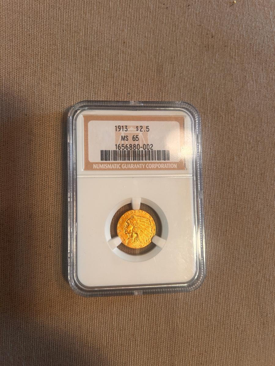 1913 $2.5 Indian Gold Eagle Coin MS-65 NGC