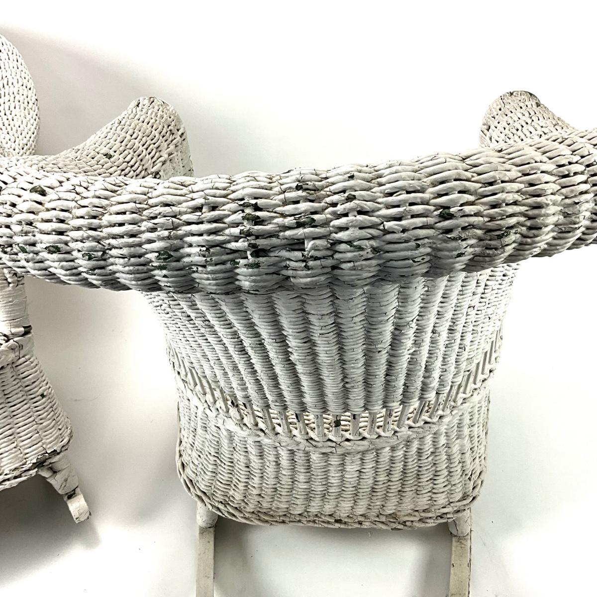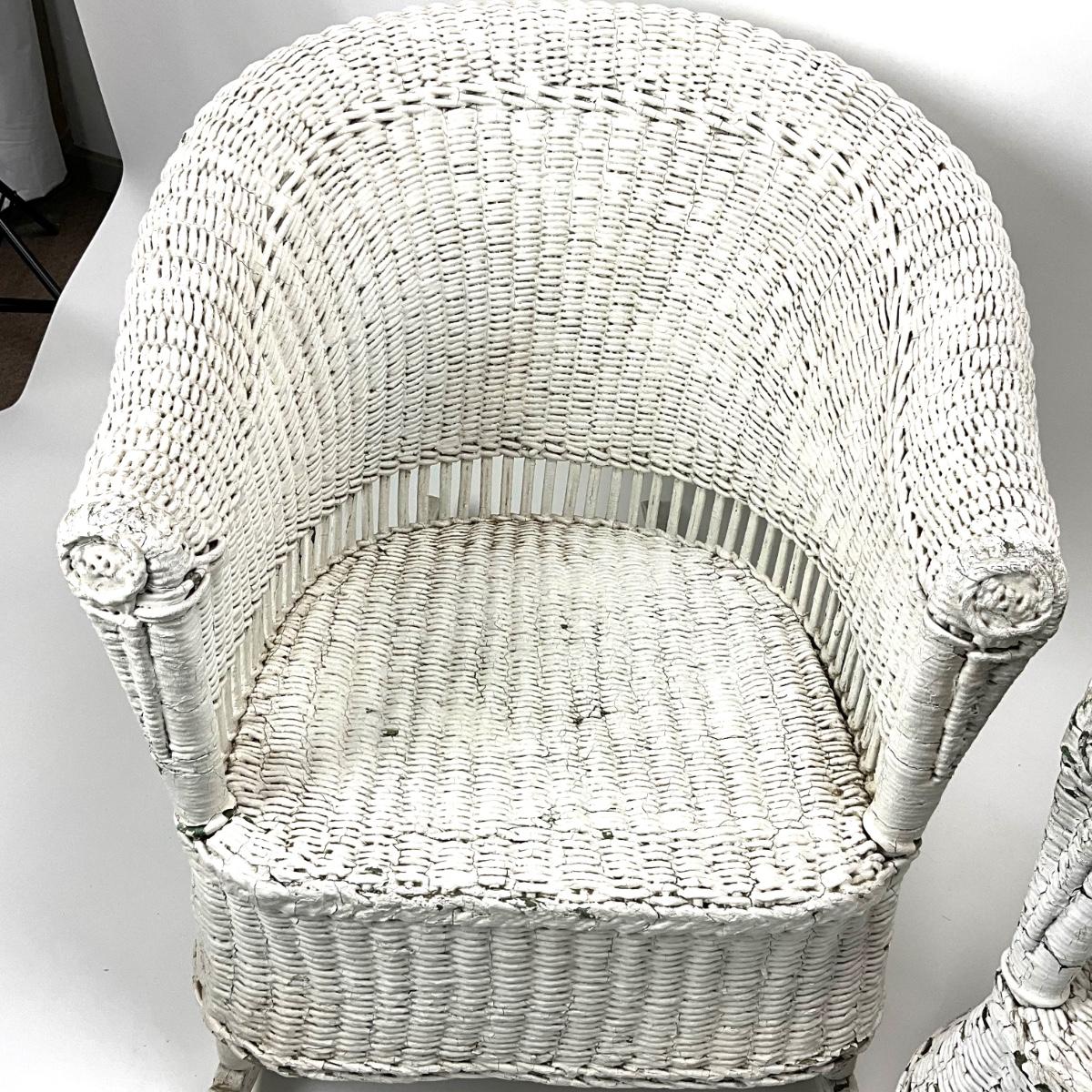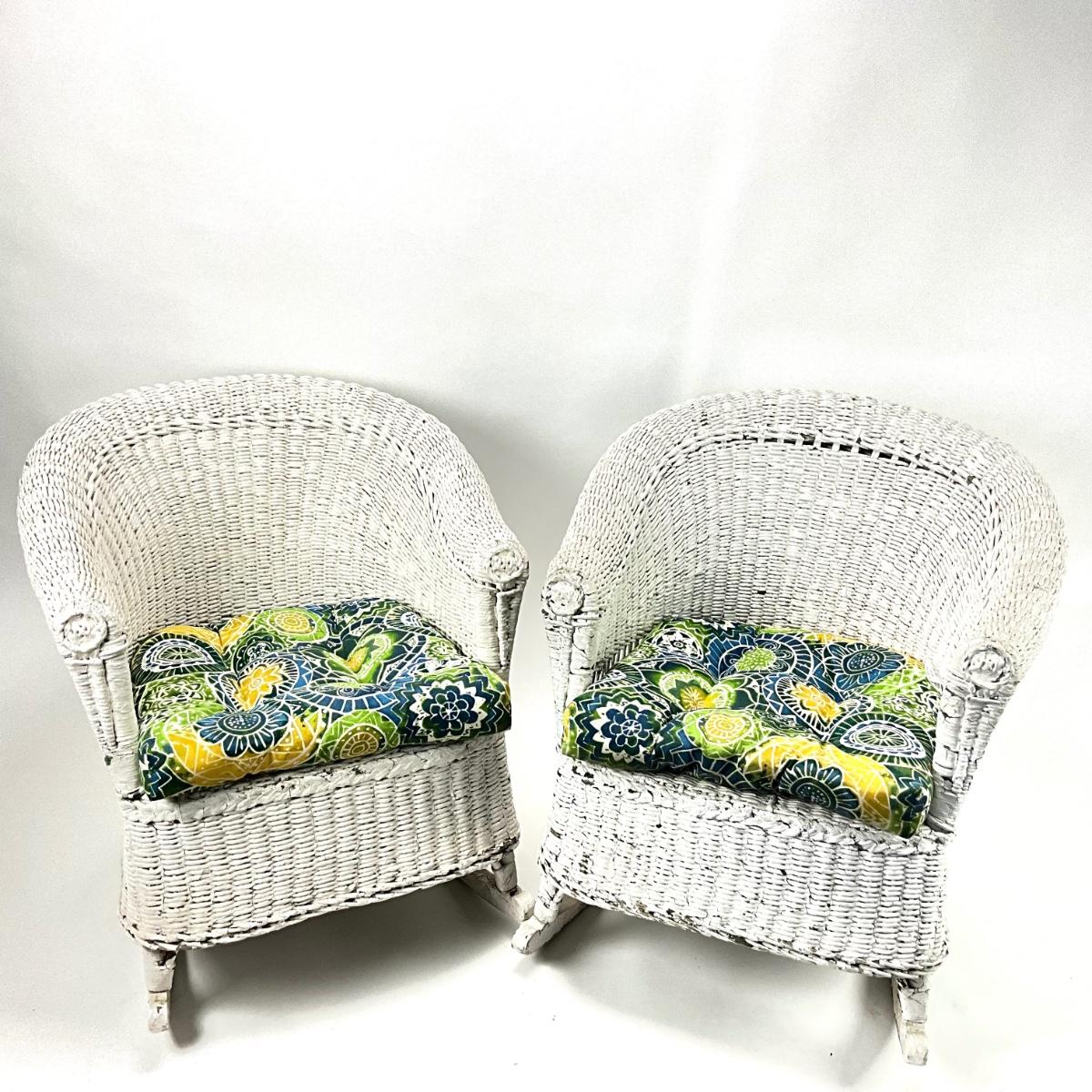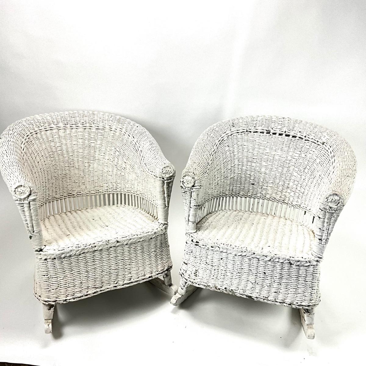 1913 Antique Victorian Solid Wicker Porch Rocking Chairs PAIR