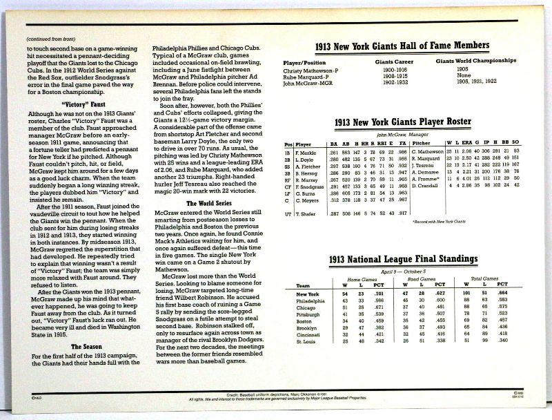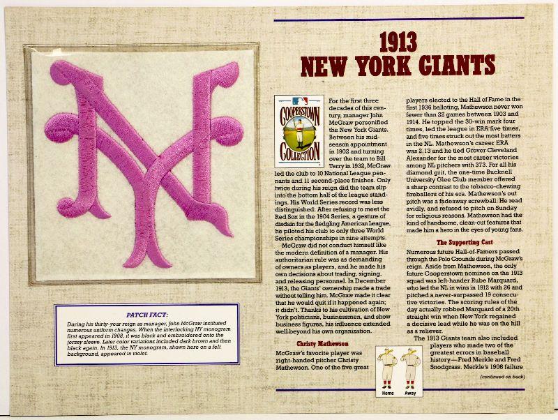 1913 NEW YORK GIANTS BASEBALL TEAM PATCH - Cooperstown Collection by Willabee & Ward