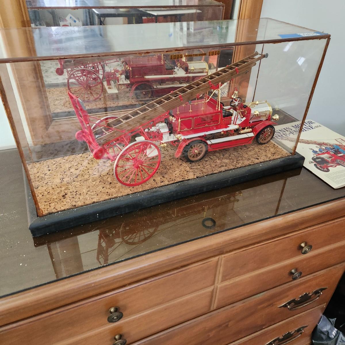1914 Dennis Motor Fire Engine Model in display case with book