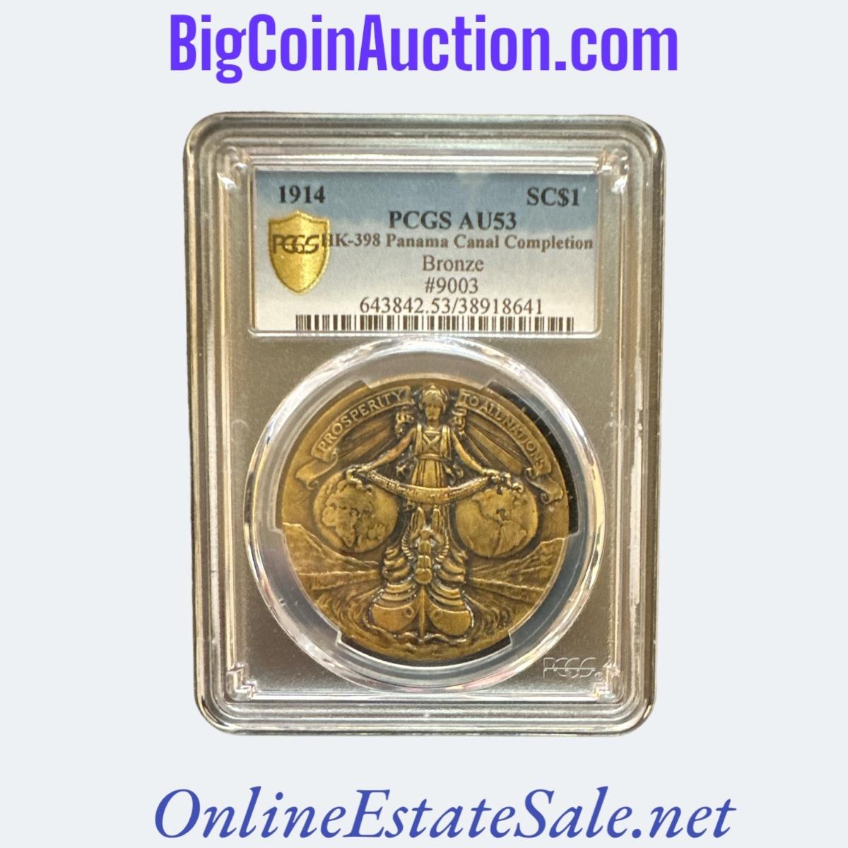 1914 PANAMA CANAL COMPLETION BRONZE COIN - PCGS AU53