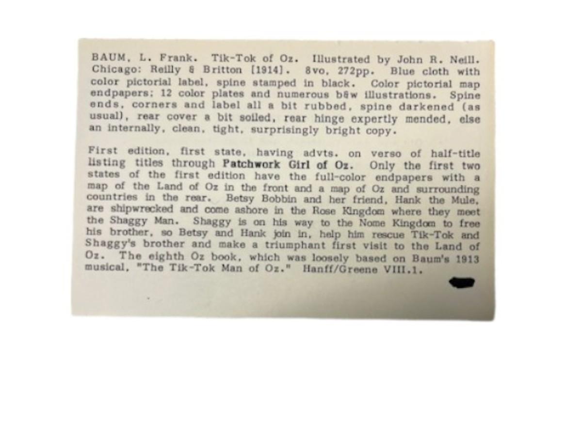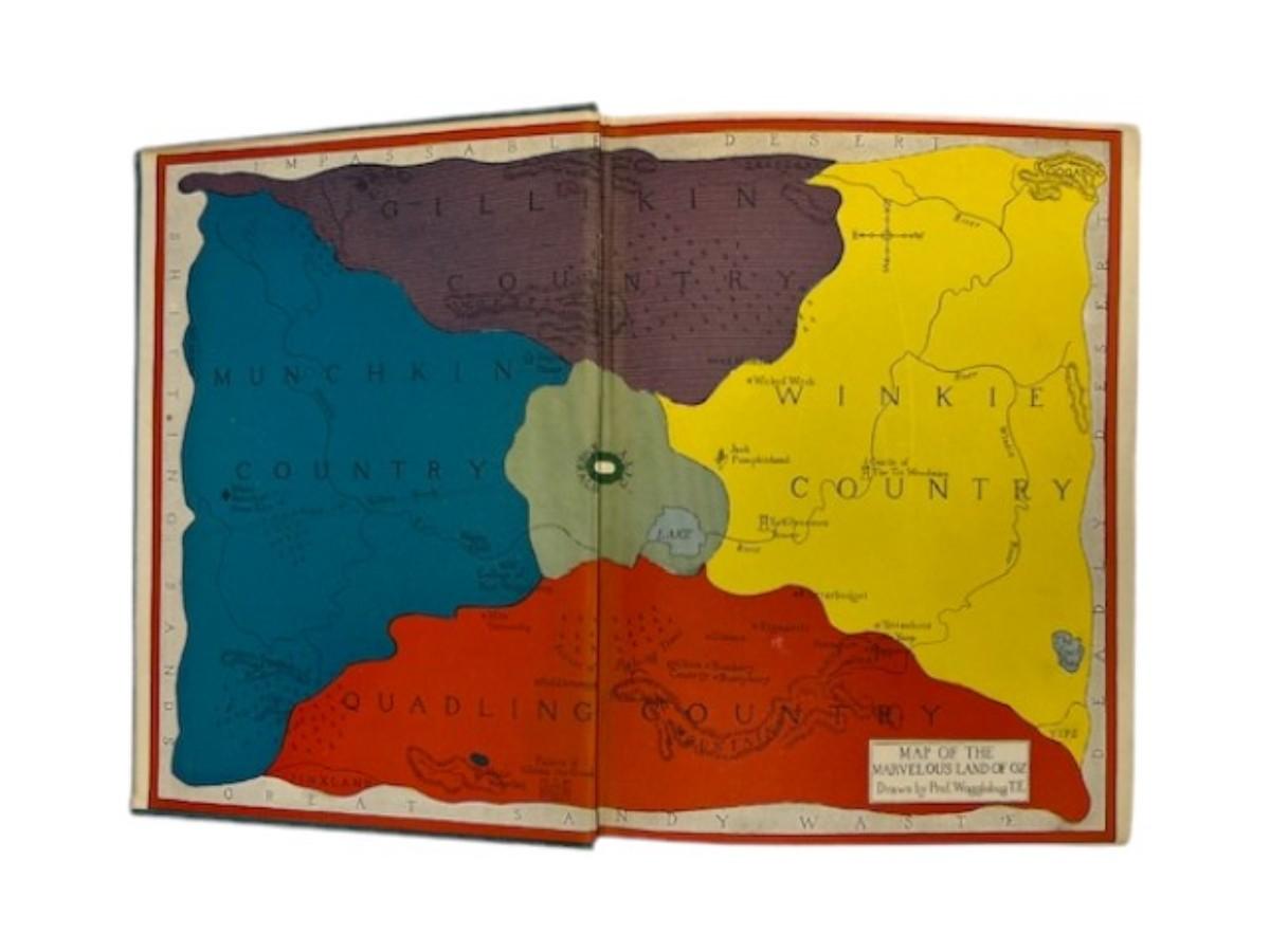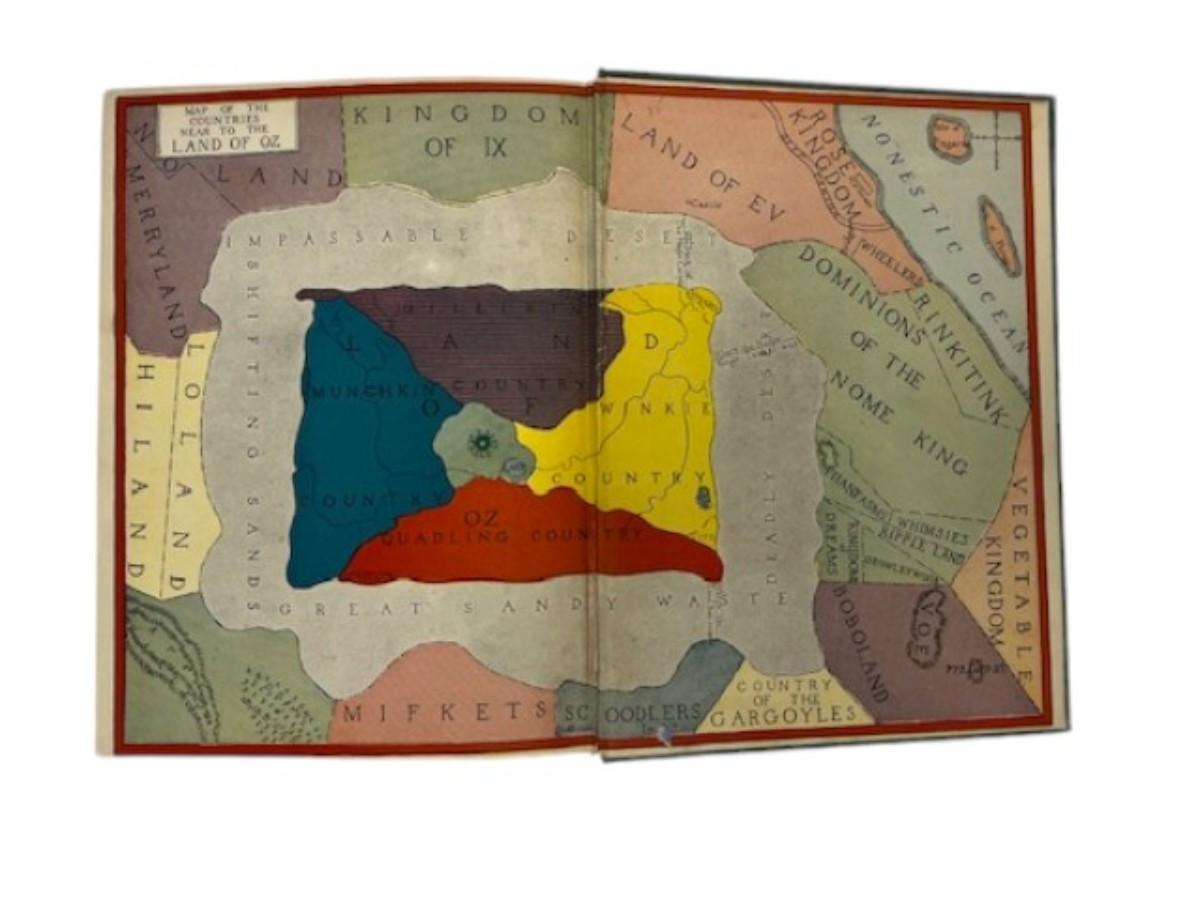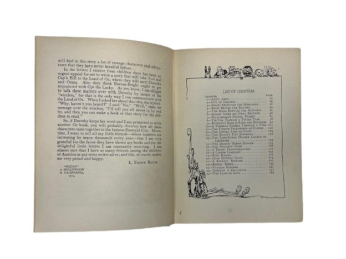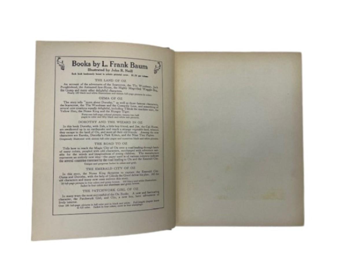 Pre-auction estimate: $600-800. Written by Frank Baum. Illustrated by John R. Neill. This edition is early, because this book contains color end papers. Age related wear. Measurement: 9" x 7". [BS]