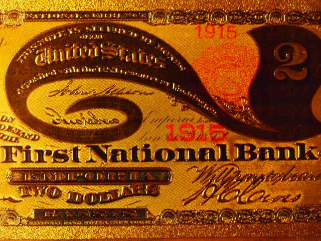1915 2 Dollar 24 K Gold Bank Note 1916