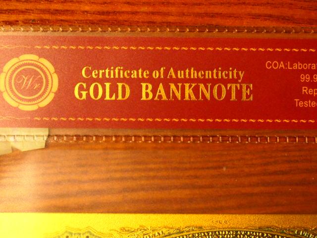 1915 2 Dollar 24 K Gold Bank Note With COA in Plastic Bill Holder Dont know the weight of the bill very cool and it is 24 K gold
