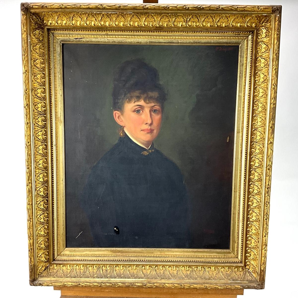 1916 Antique Oil Portrait of a Lady 1882 by P. Koch