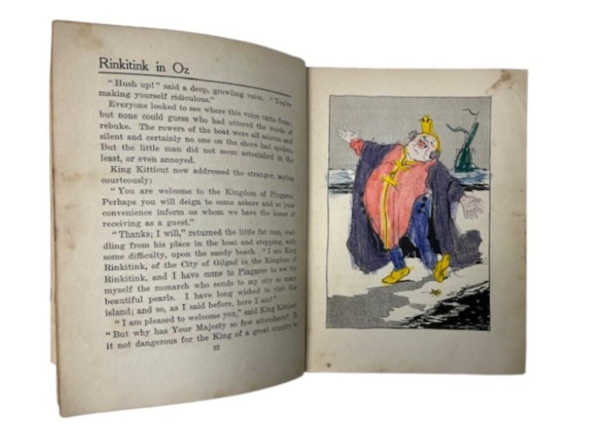 Pre-auction estimate: $400-600. By Frank Baum. There are 314 pages with color plates. The book has separated from the spine, and some pages are loose. There is minimal writing on leading pages. Measurement: 10" x 7". [BS]
