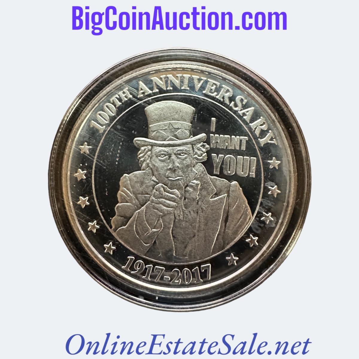 1917-2017 U.S. 100th ANNIVERSARY ONE TROY OUNCE .999 FINE SILVER COIN