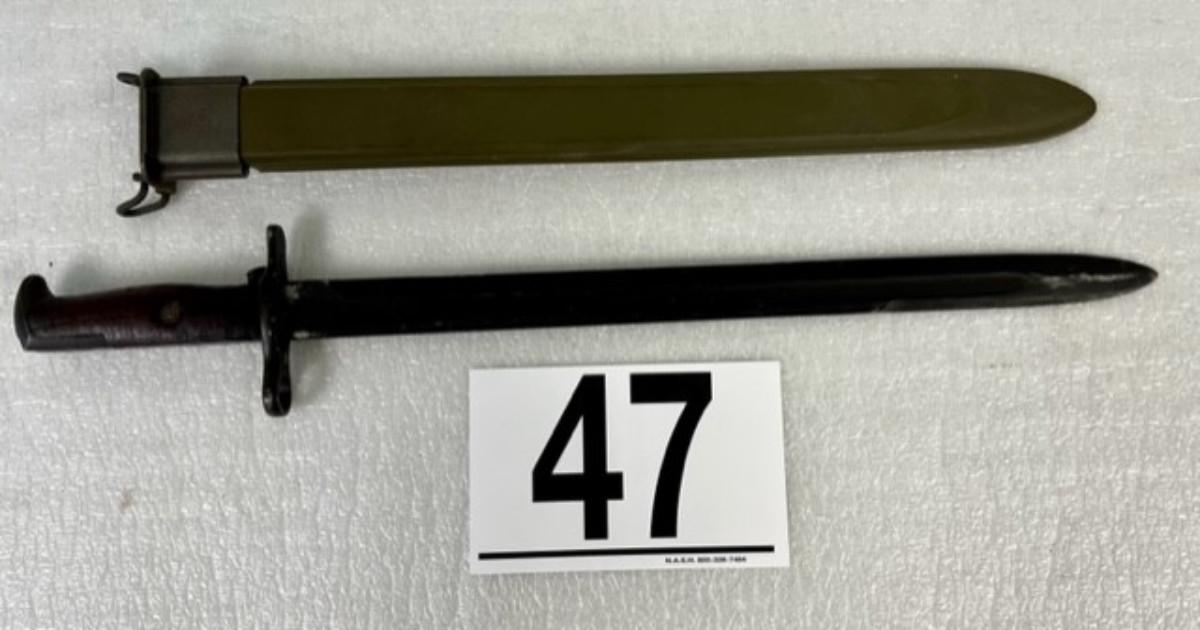 WW1. Model M1905. Includes believed to be non-original scabbard. Blade length is15.75". SOLD AS IS.