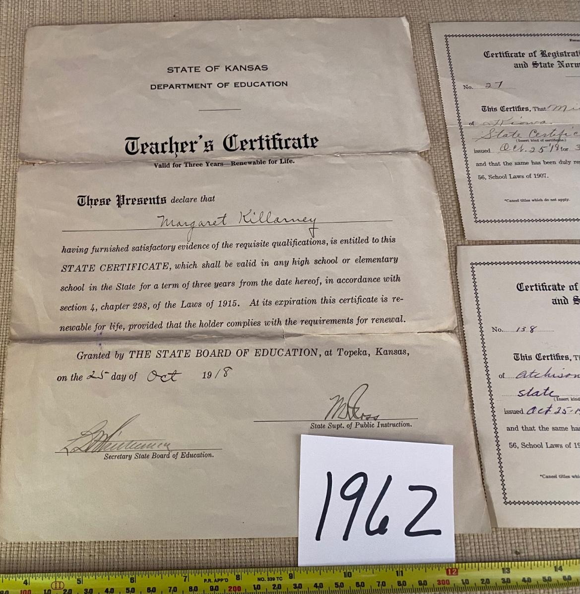 1918 Teachers Certificate