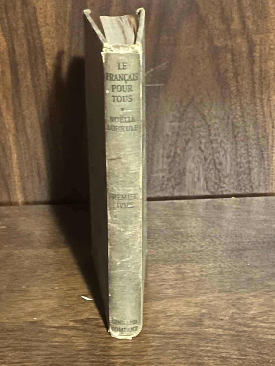 Vintage 1919 edition of Le Français Pour Tous (Premier Livre) by Noëlia Dubrule, published by Ginn & Company. Early 20th-century French language schoolbook with classic Athenæum Press typography. Clothbound, 1919 copyright. Book shows wear consistent with age—rubbing, spine wear, and cover discoloration—but pages are intact and readable. A great addition for collectors of antique textbooks, early language instruction, or historical educational materials.