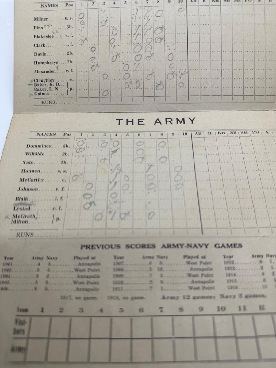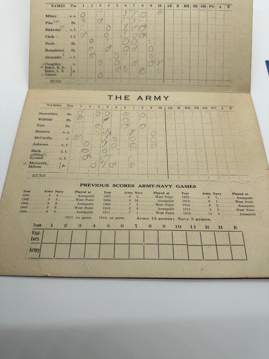 1919 Navy vs Army Baseball Scorecard & Ticket