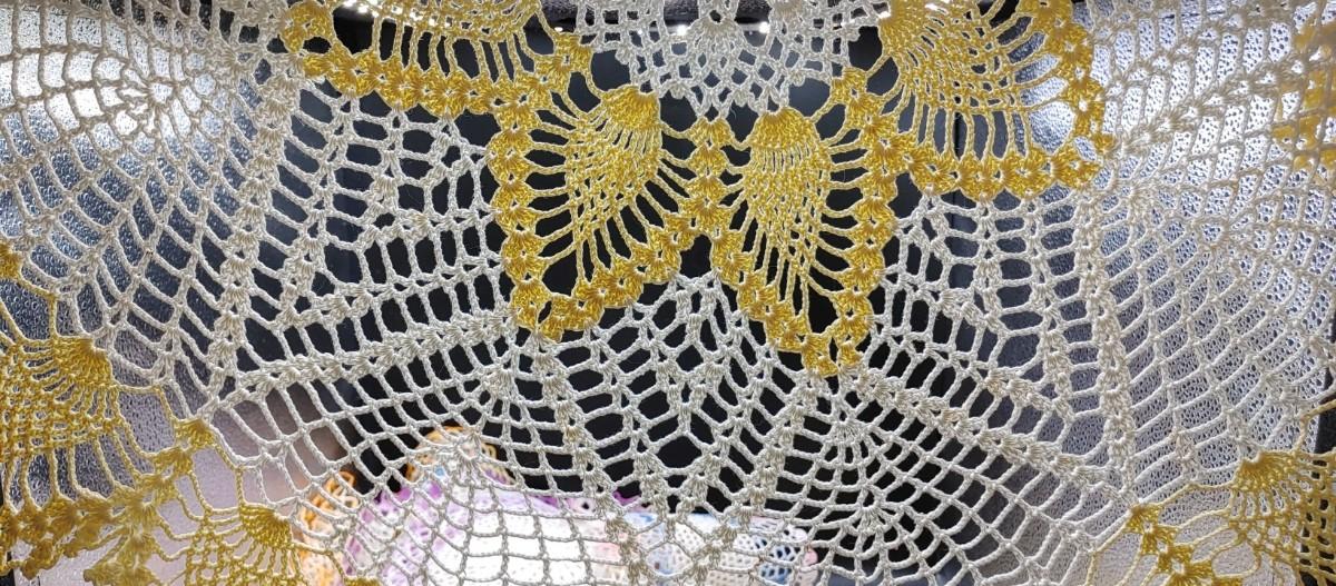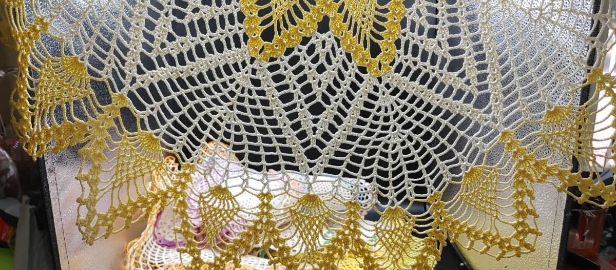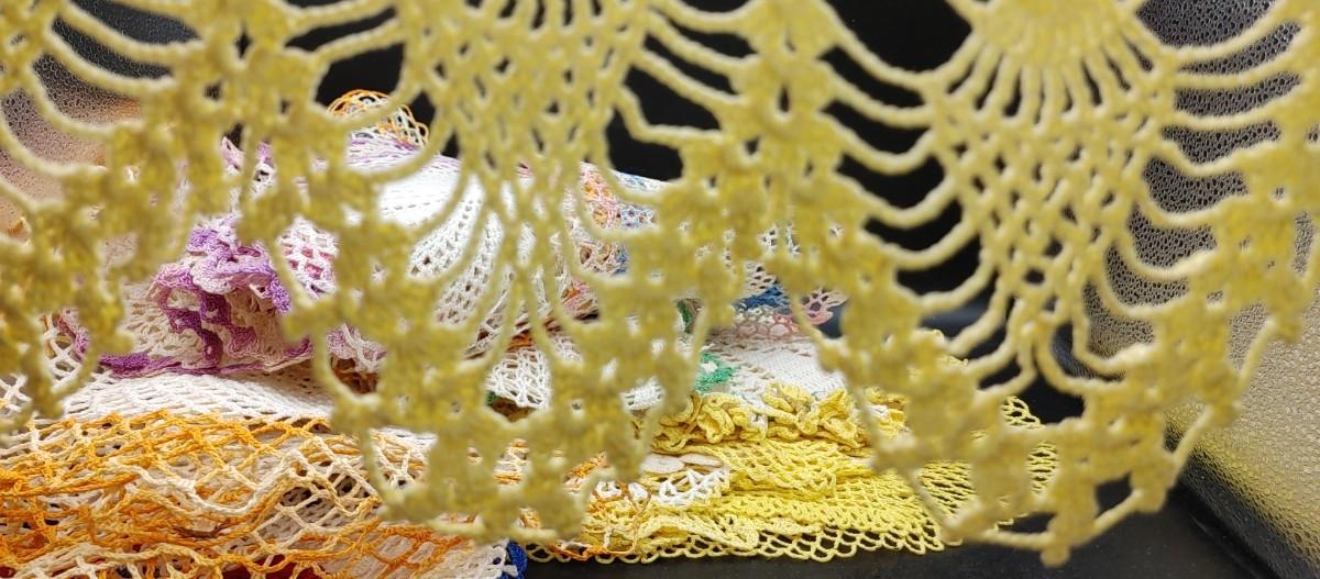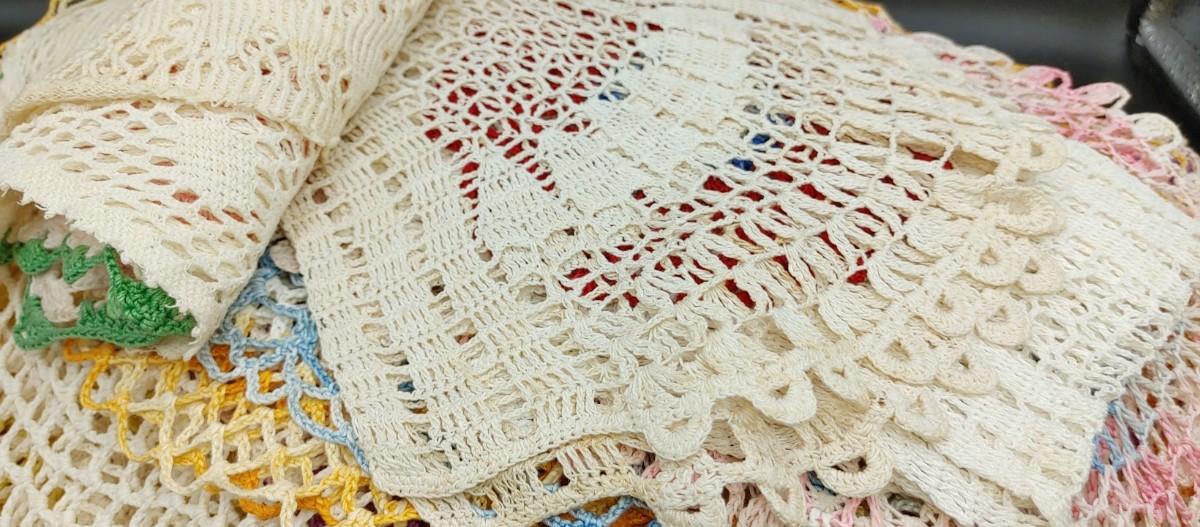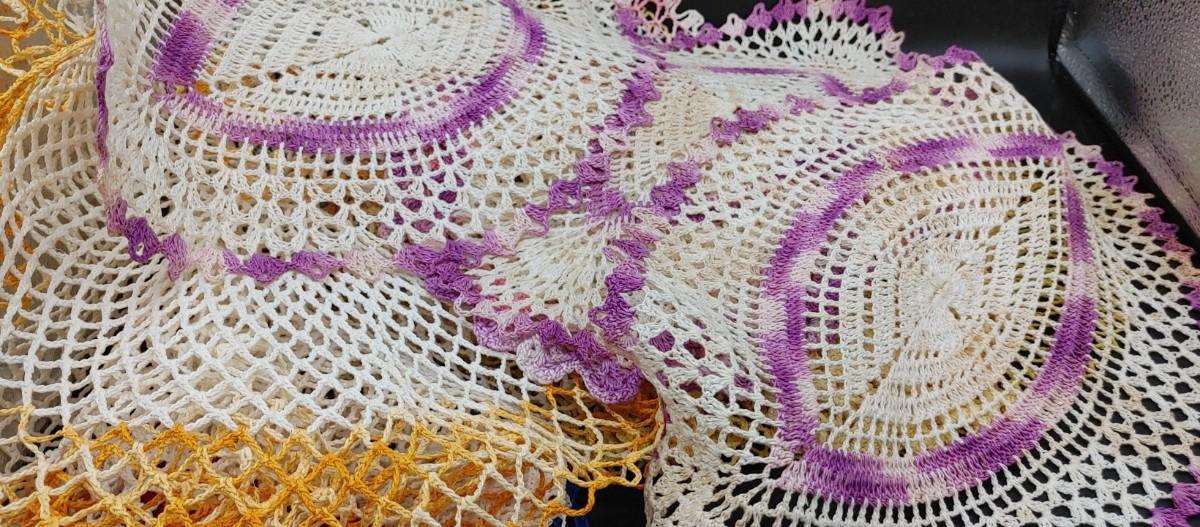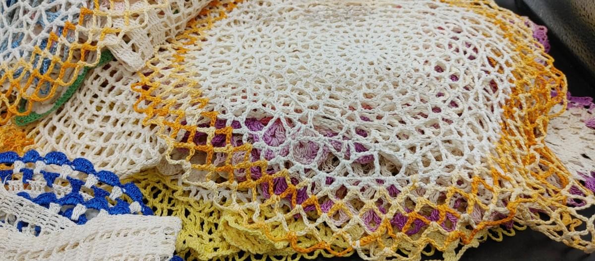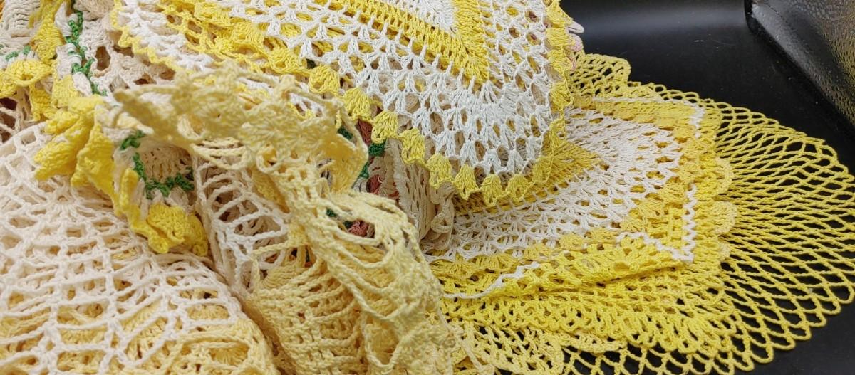 #192 (46) Vintage Hand Made colorful Doilies.. some are neutral beige color but most are colorful and many of them are starts extremely nice lot of vintage doilies.