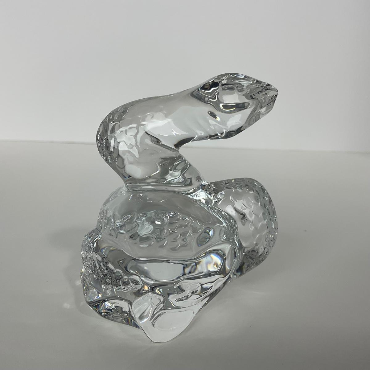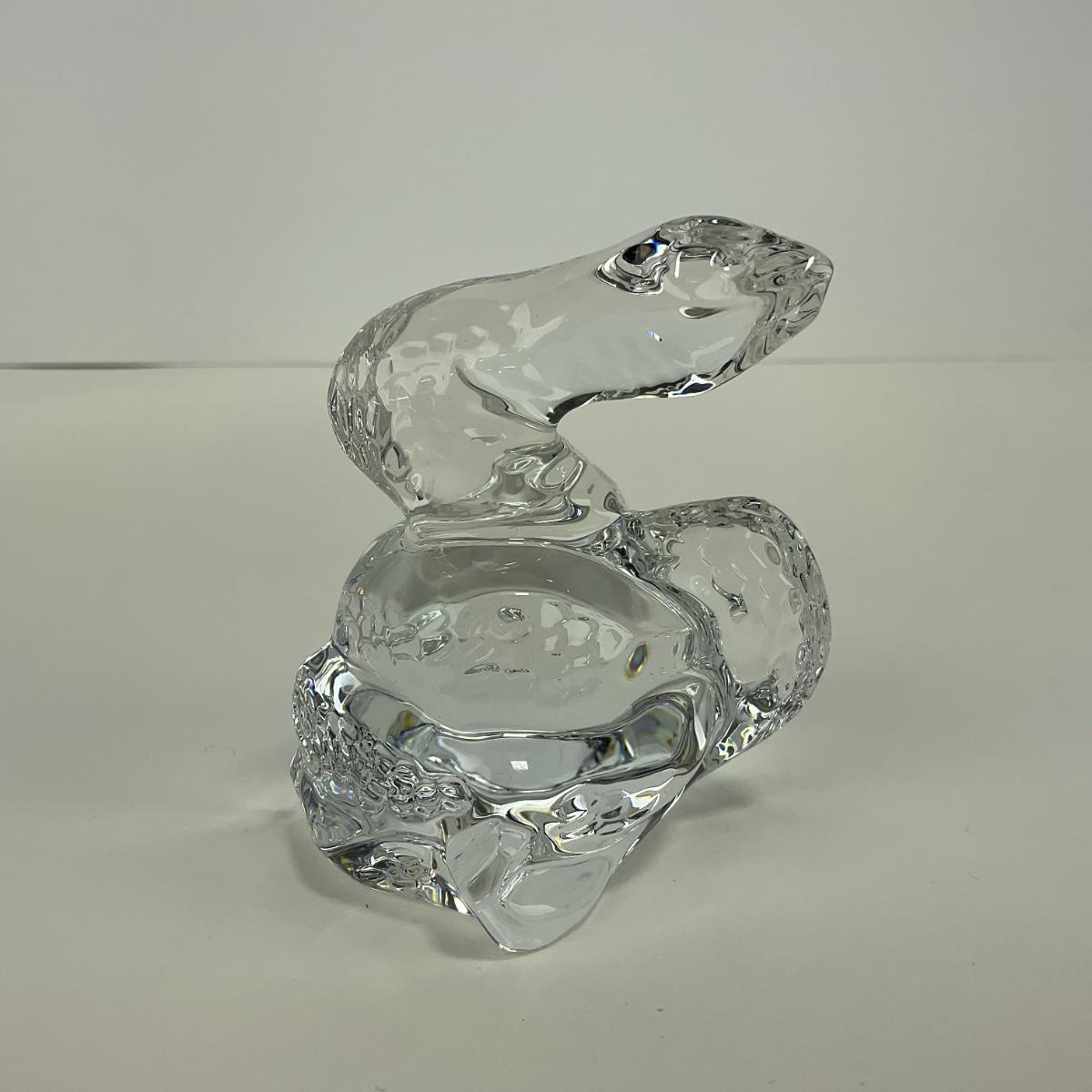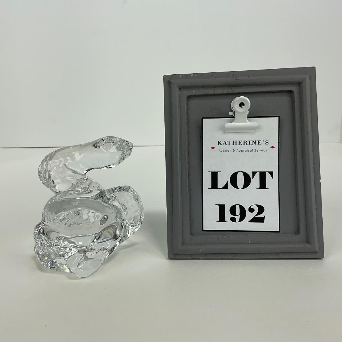 One crystal Baccarat zodiac coiled snake signed and marked. 3 1/4 inches tall by 3 1/4 inches wide. This piece has no damage, and appears to be in great shape with no visable chips, cracks, or broken pieces. Please see photos for details and condition. Any condition statement is given as a courtesy to a client, is an opinion, and should not be treated as a statement of fact. Reference to condition written, oral or within a condition report shall not be regarded as a full account of condition and may not include all defects, alterations, or restorations. Absence of a condition report does not imply a lot is flawless or lacking imperfections or damage. Katherine’s Auction & Appraisal Service shall have no responsibility for any error or omission. Returns shall not be accepted on the basis of condition. ::: Shipping is available on this lot. If you require shipping you must let us know at the close of the auction. We will coordinate with you after the item has been won. Shipping fees will include insurance up to or exceeding the value of all items being mailed. If you have any questions regarding this lot please contact the auctioneer either via this website, by direct email or by phone. PICK UP TIMES and other important information can be found in the TERMS and DESCRIPTION of the auction. Please take a look for pertinent information. Thanks!