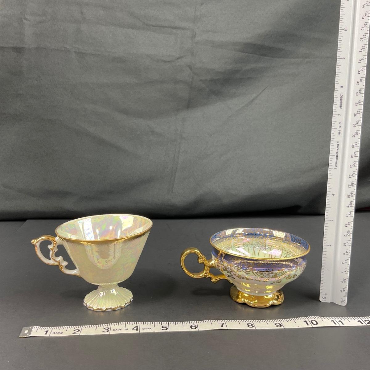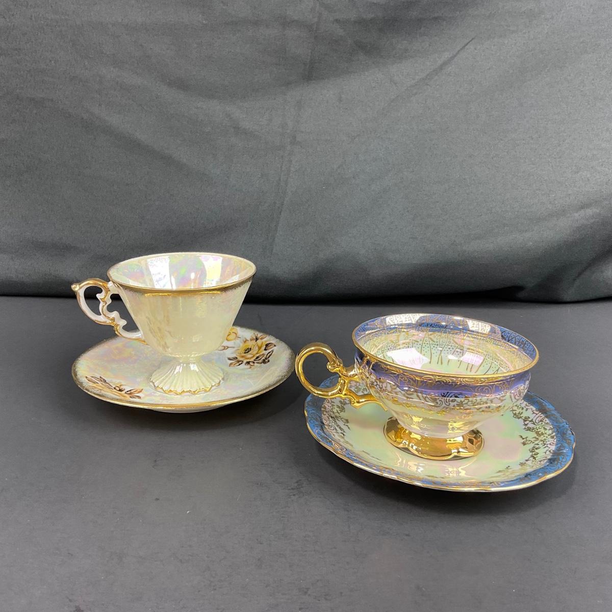 Two vintage sets of cups and saucers. This piece has no damage, and appears to be in great shape with no visable chips, cracks, or broken pieces. Please see photos for details and condition. Any condition statement is given as a courtesy to a client, is an opinion, and should not be treated as a statement of fact. Reference to condition written, oral or within a condition report shall not be regarded as a full account of condition and may not include all defects, alterations, or restorations. Absence of a condition report does not imply a lot is flawless or lacking imperfections or damage. Katherine’s Auction & Appraisal Service shall have no responsibility for any error or omission. Returns shall not be accepted on the basis of condition. ::: Shipping is available on this lot. If you require shipping you must let us know at the close of the auction. We will coordinate with you after the item has been won. Shipping fees will include insurance up to or exceeding the value of all items being mailed. If you have any questions regarding this lot please contact the auctioneer either via this website, by direct email or by phone. PICK UP TIMES and other important information can be found in the TERMS and DESCRIPTION of the auction. Please take a look for pertinent information. Thanks!