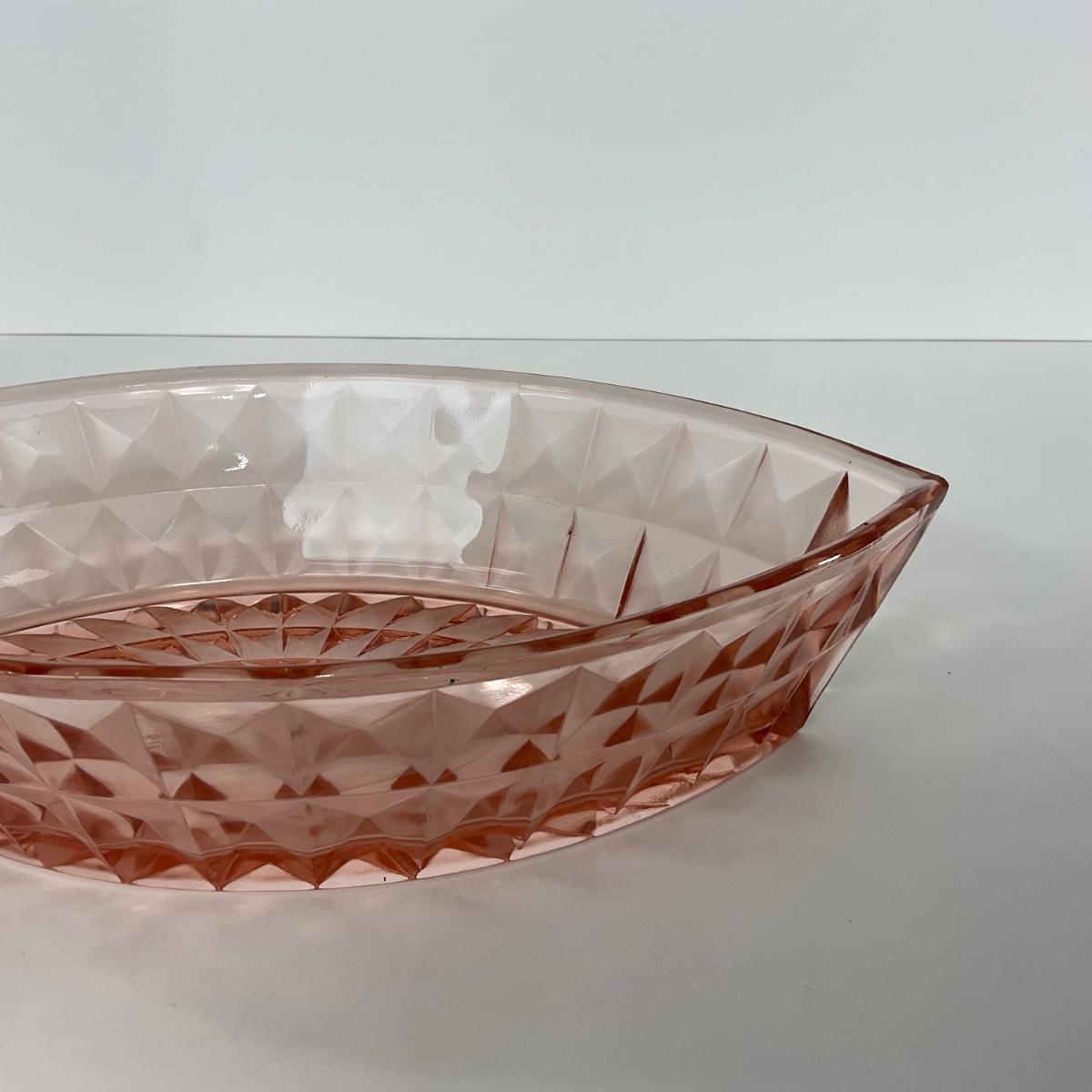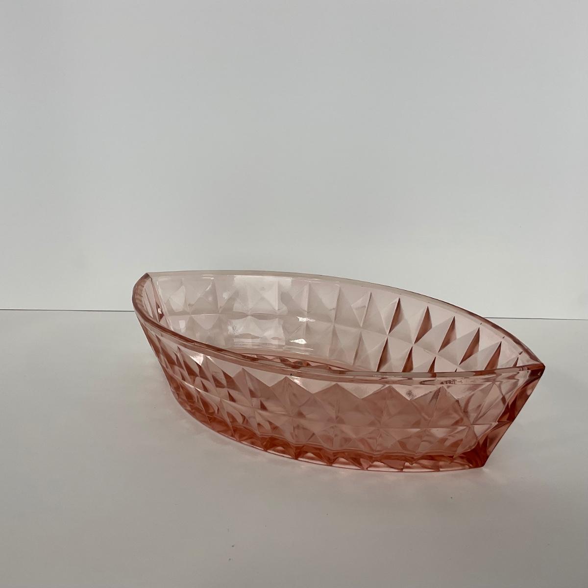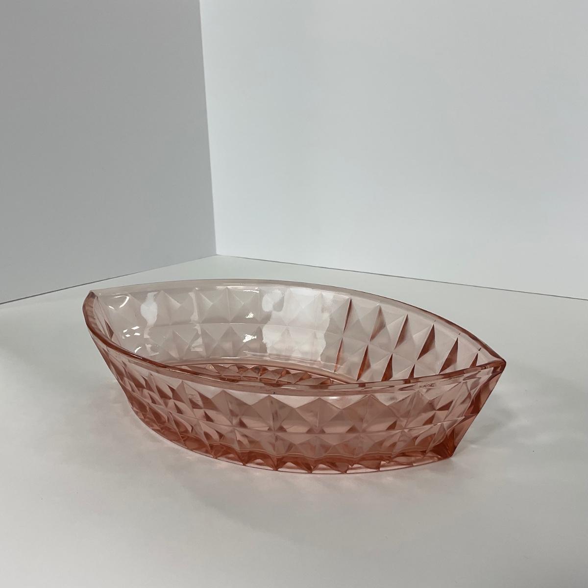 -192- GLASSWARE | Pink Windsor Diamond Jeanette Glass Co. | Boat Dish