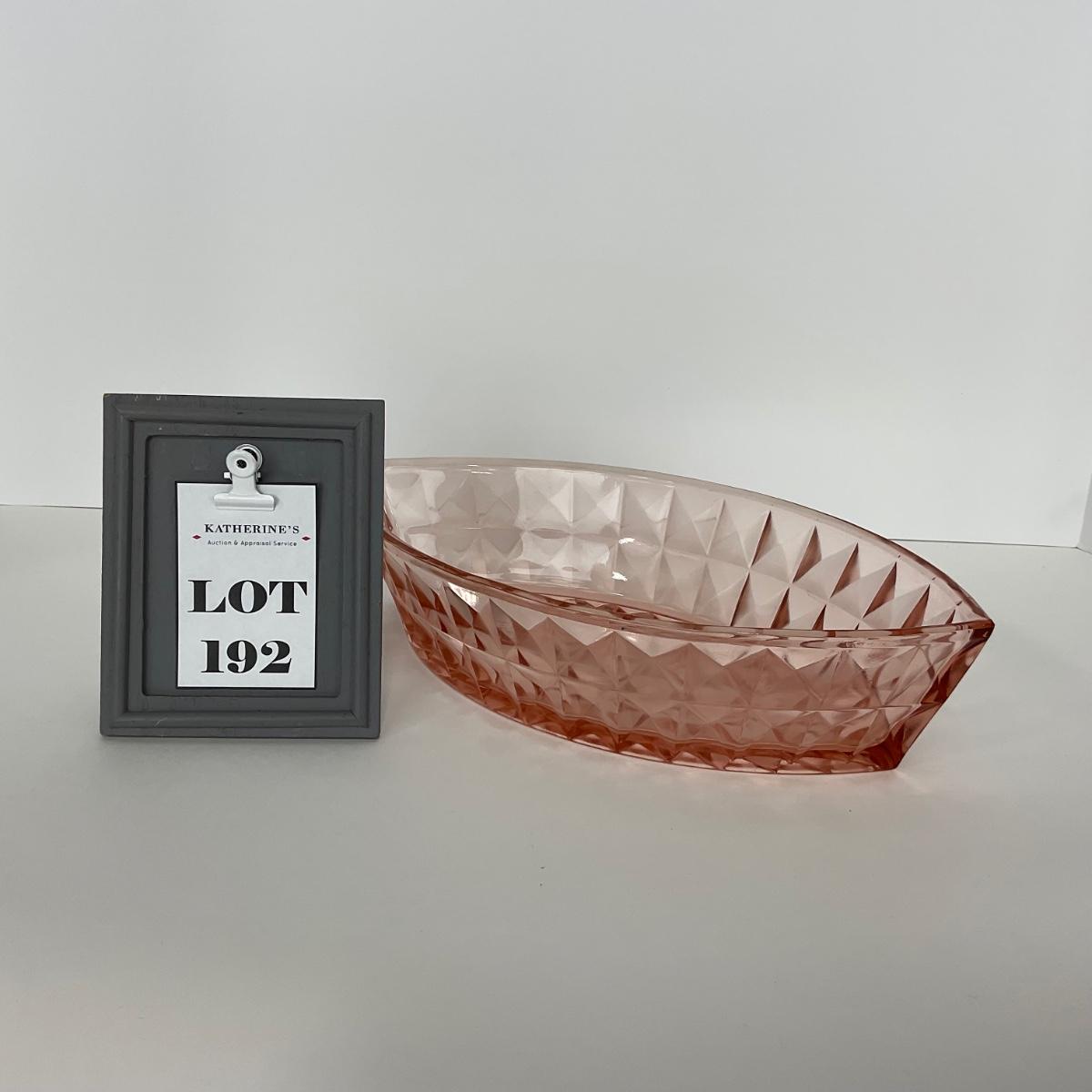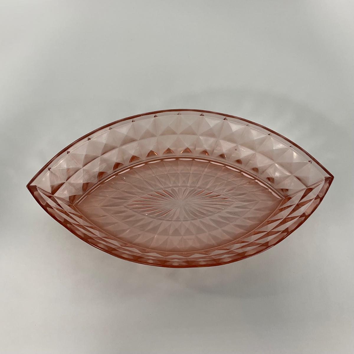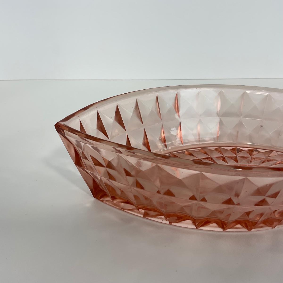 -192- GLASSWARE | Pink Windsor Diamond Jeanette Glass Co. | Boat Dish