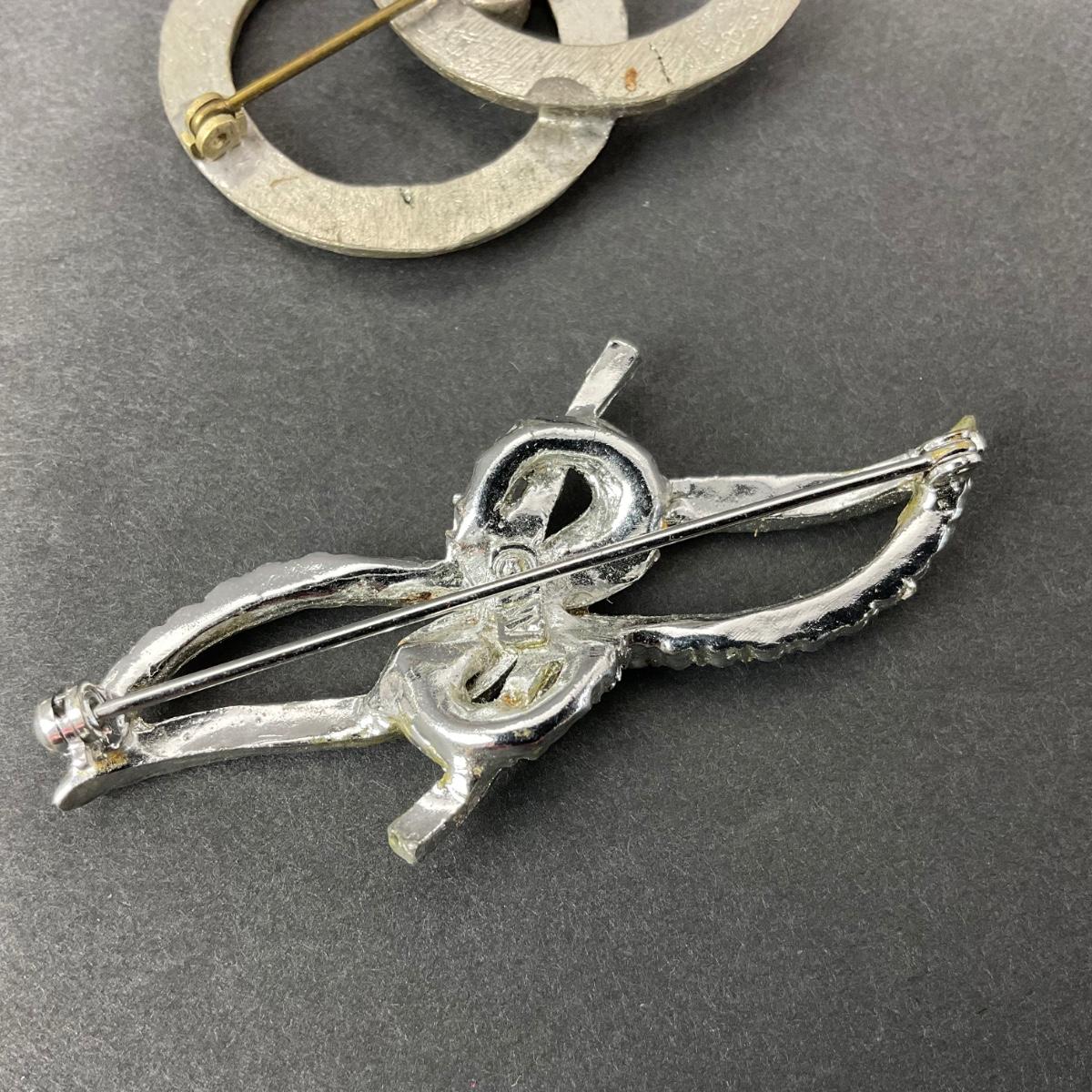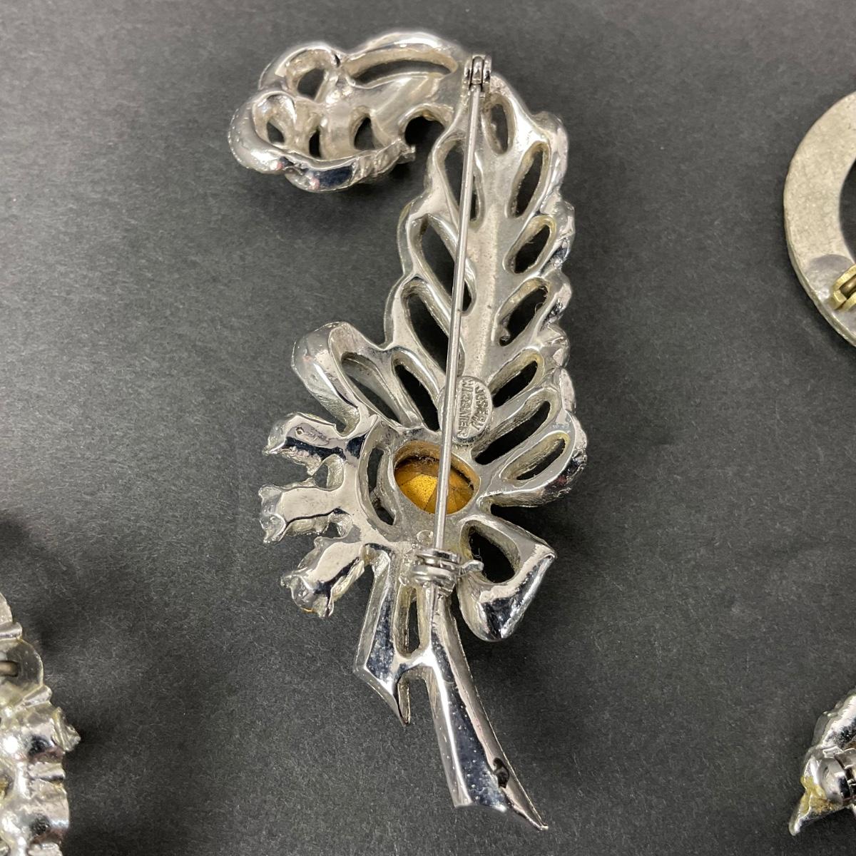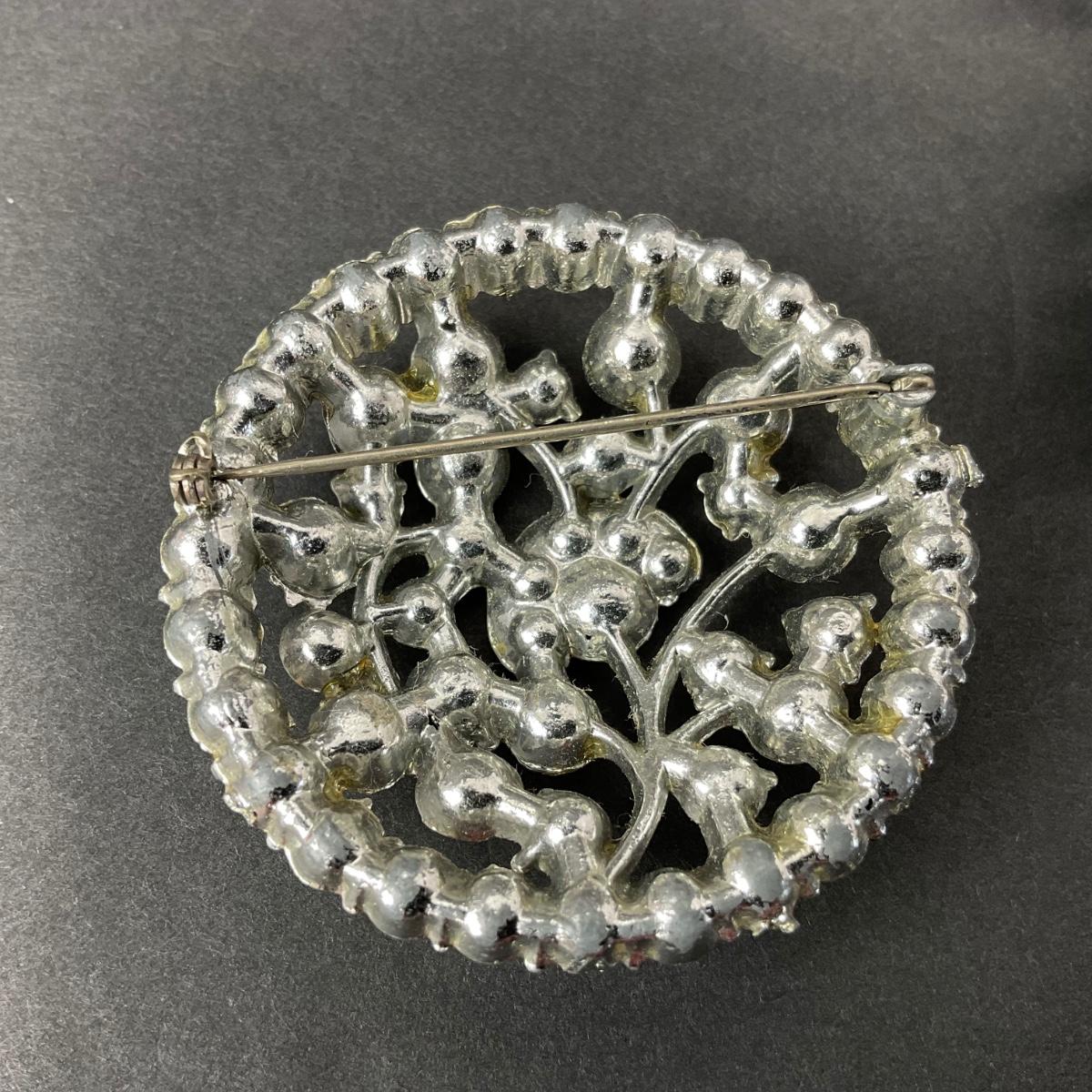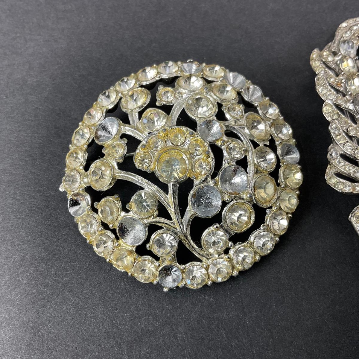 Four rhinestone brooches. One is a marked Joesph Wiesner NY. This pieces are worn damaged and some are missing rhinestones. Please see photos for details and condition. Any condition statement is given as a courtesy to a client, is an opinion, and should not be treated as a statement of fact. Reference to condition written, oral or within a condition report shall not be regarded as a full account of condition and may not include all defects, alterations, or restorations. Absence of a condition report does not imply a lot is flawless or lacking imperfections or damage. Katherine’s Auction & Appraisal Service shall have no responsibility for any error or omission. Returns shall not be accepted on the basis of condition. ::: Shipping is available on this lot. If you require shipping you must let us know at the close of the auction. We will coordinate with you after the item has been won. Shipping fees will include insurance up to or exceeding the value of all items being mailed. If you have any questions regarding this lot please contact the auctioneer either via this website, by direct email or by phone. PICK UP TIMES and other important information can be found in the TERMS and DESCRIPTION of the auction. Please take a look for pertinent information. Thanks!