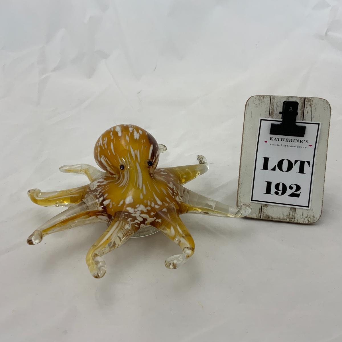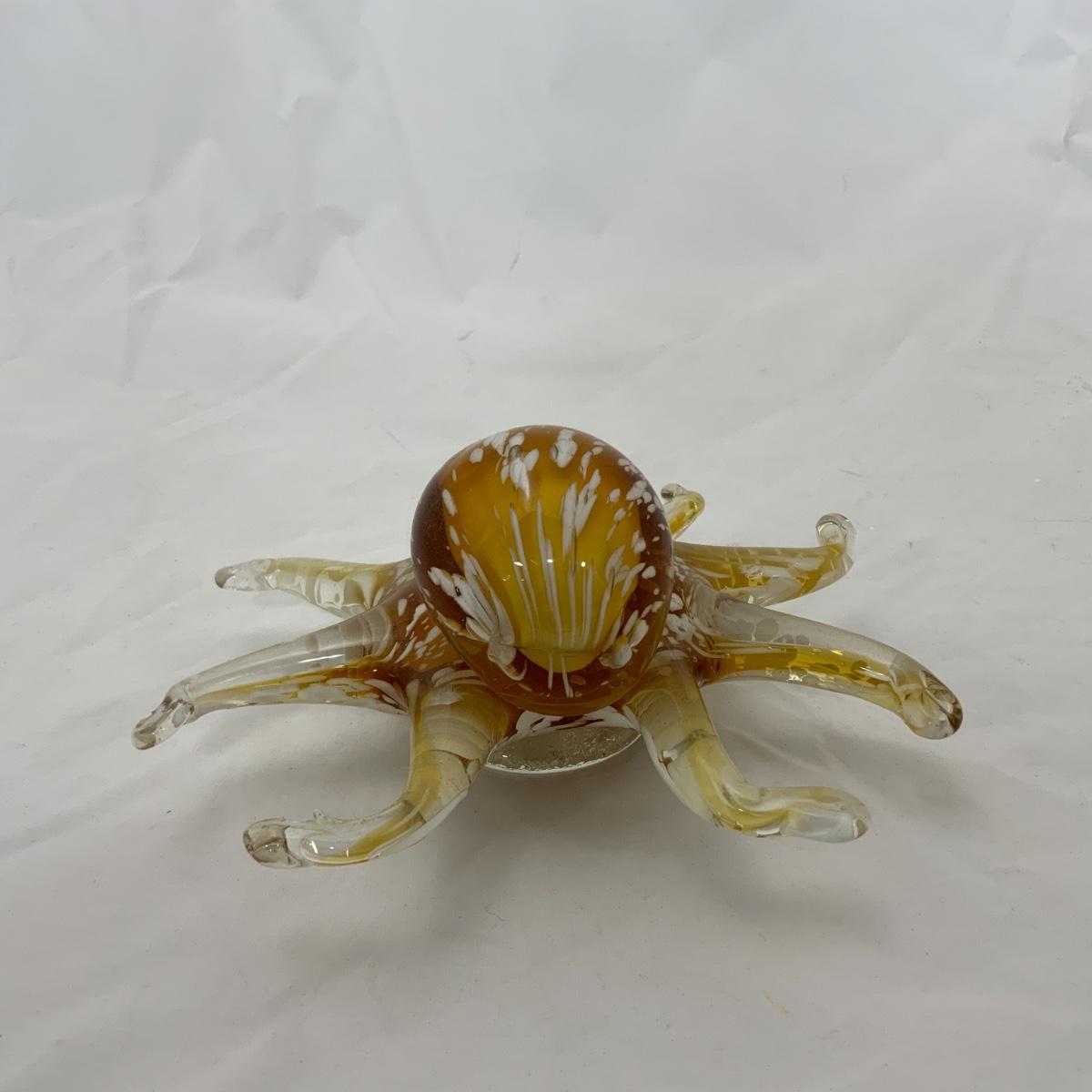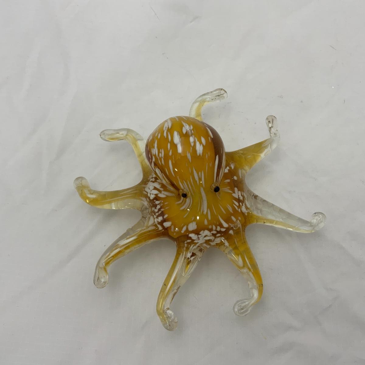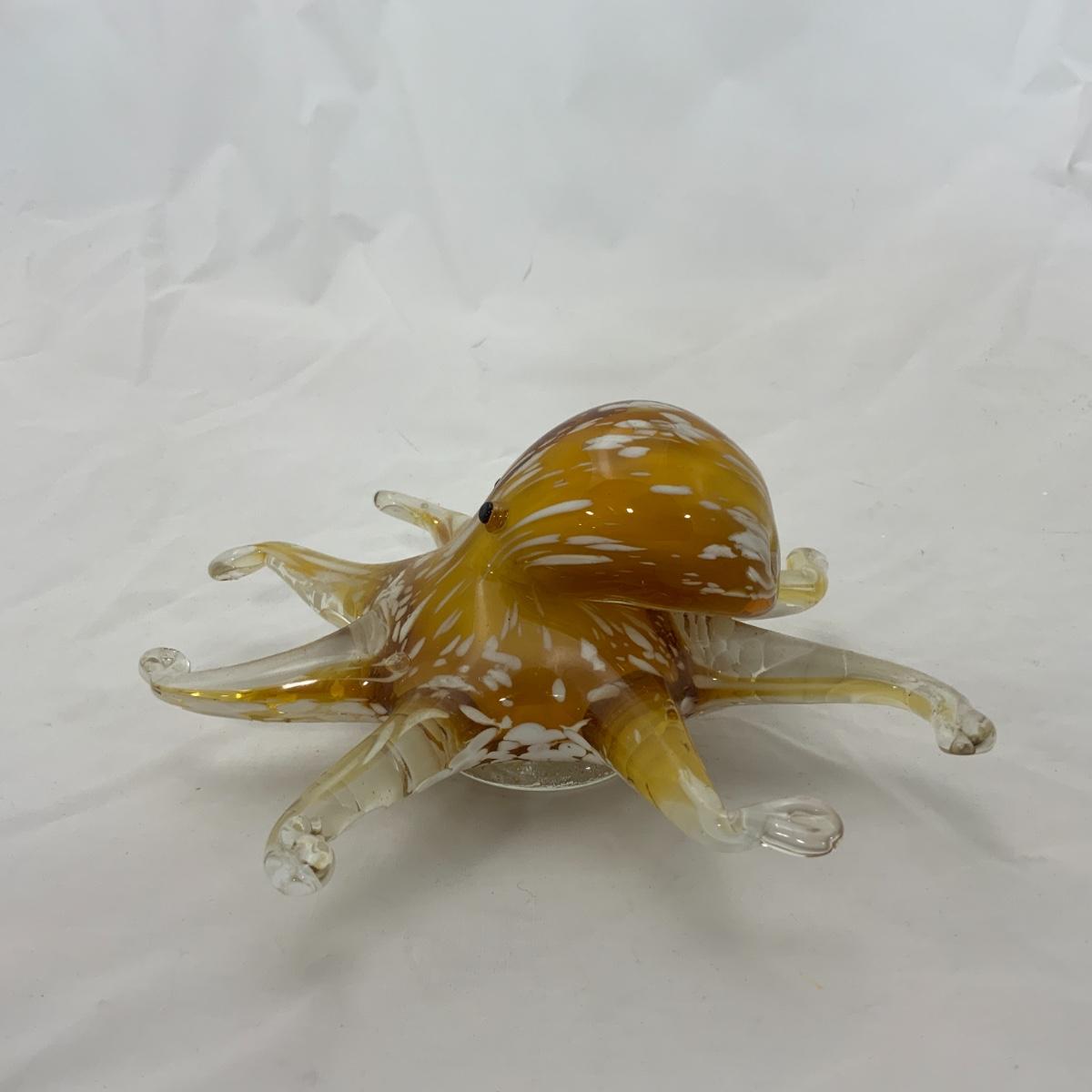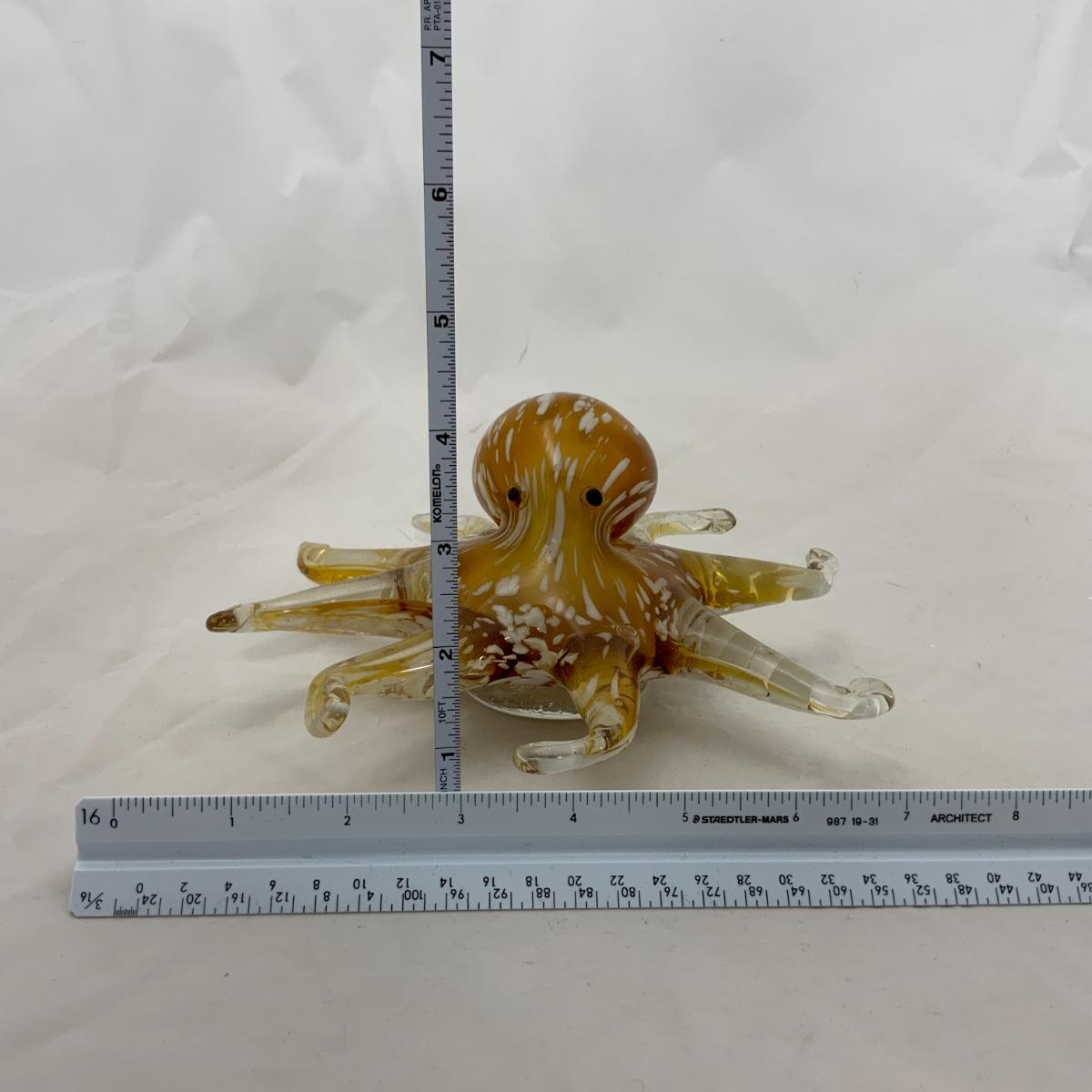 From the Estate of Peter and Alice Radovanovich: A substantial Glass Octopus, made out of beautiful hand-blown glass. Has Orange, Blue and white tones in it. Please see photos for details and condition. ::: Shipping is available on this lot. If you require shipping you must let us know at the close of the auction. We will coordinate with you after the item has been won. Shipping fees will include insurance up to or exceeding the value of all items being mailed. If you have any questions regarding this lot please contact the auctioneer either via this website, by direct email or by phone. PICK UP TIMES and other important information can be found in the TERMS and DESCRIPTION of the auction. Please take a look for pertinent information. Thanks!