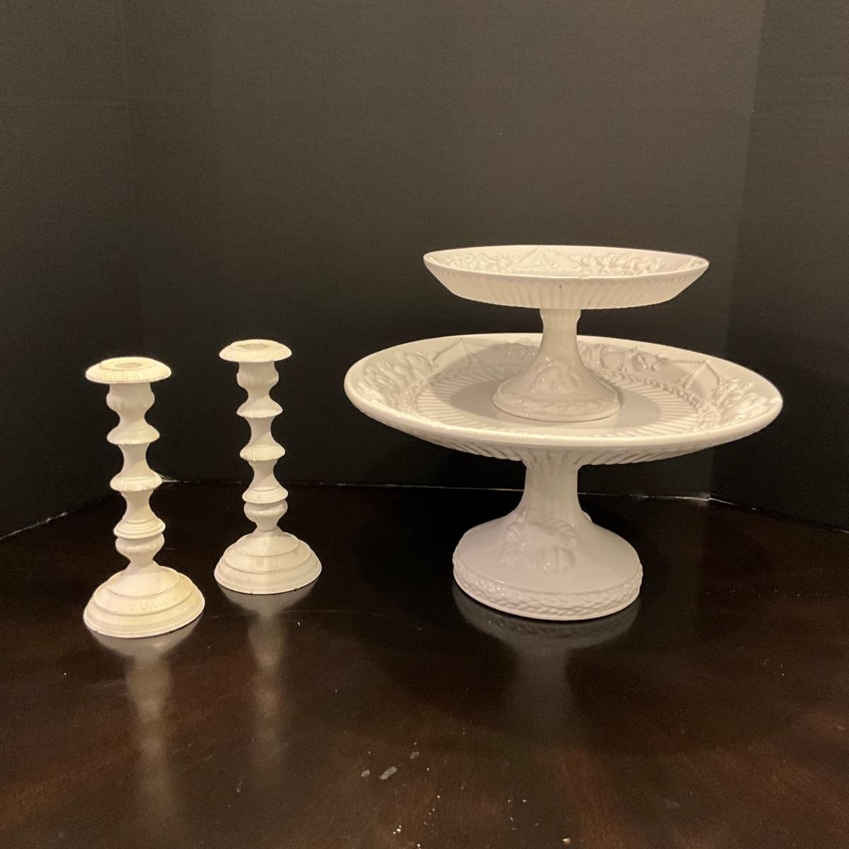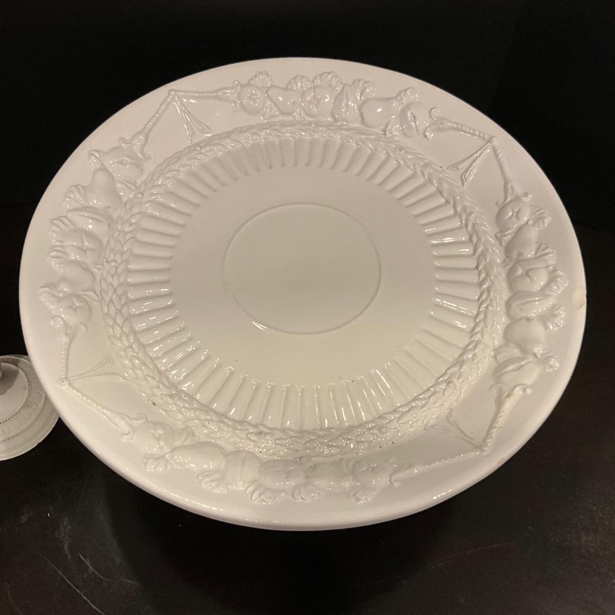 Small Pedestal dish measures 8.75" diameter x 4.75" high with chip