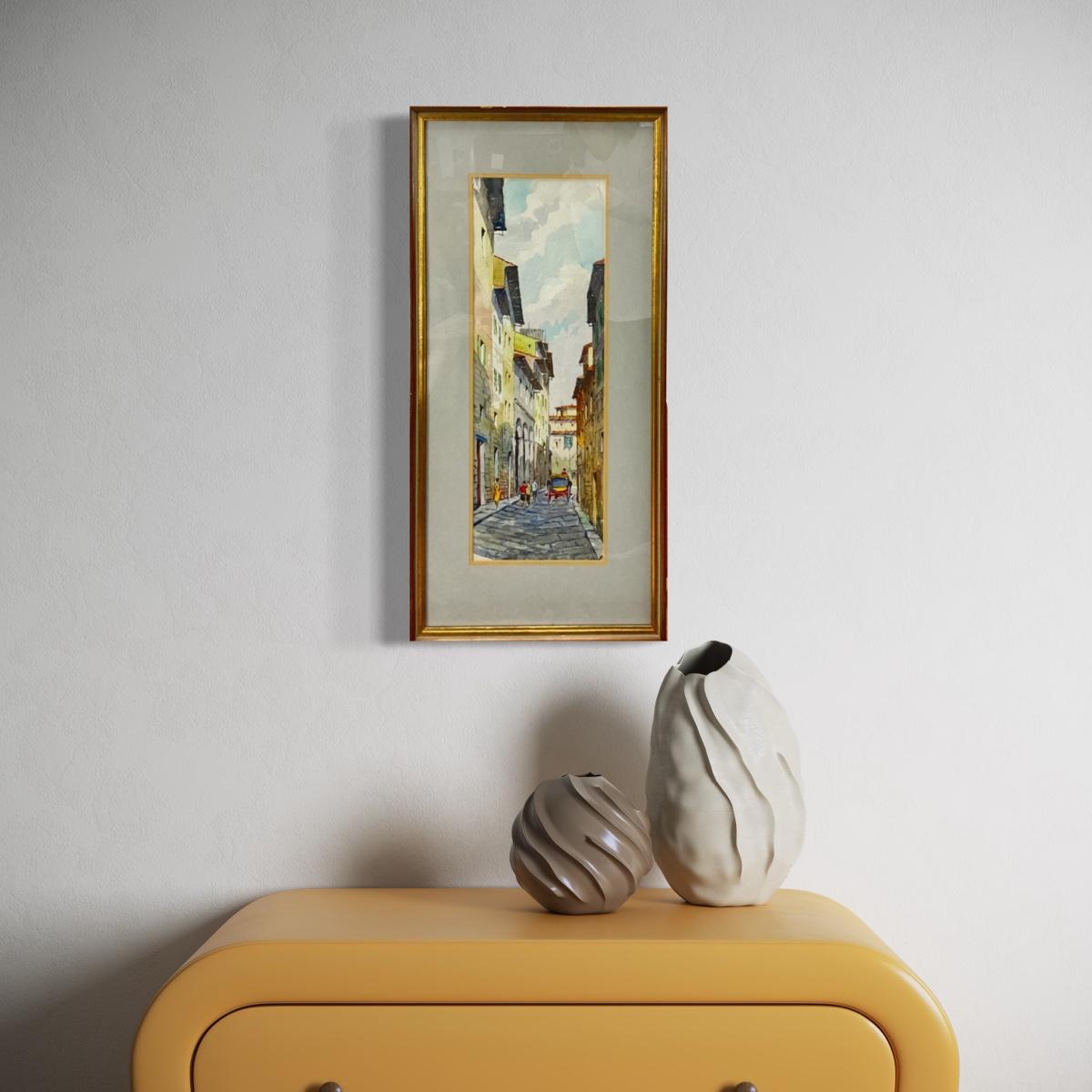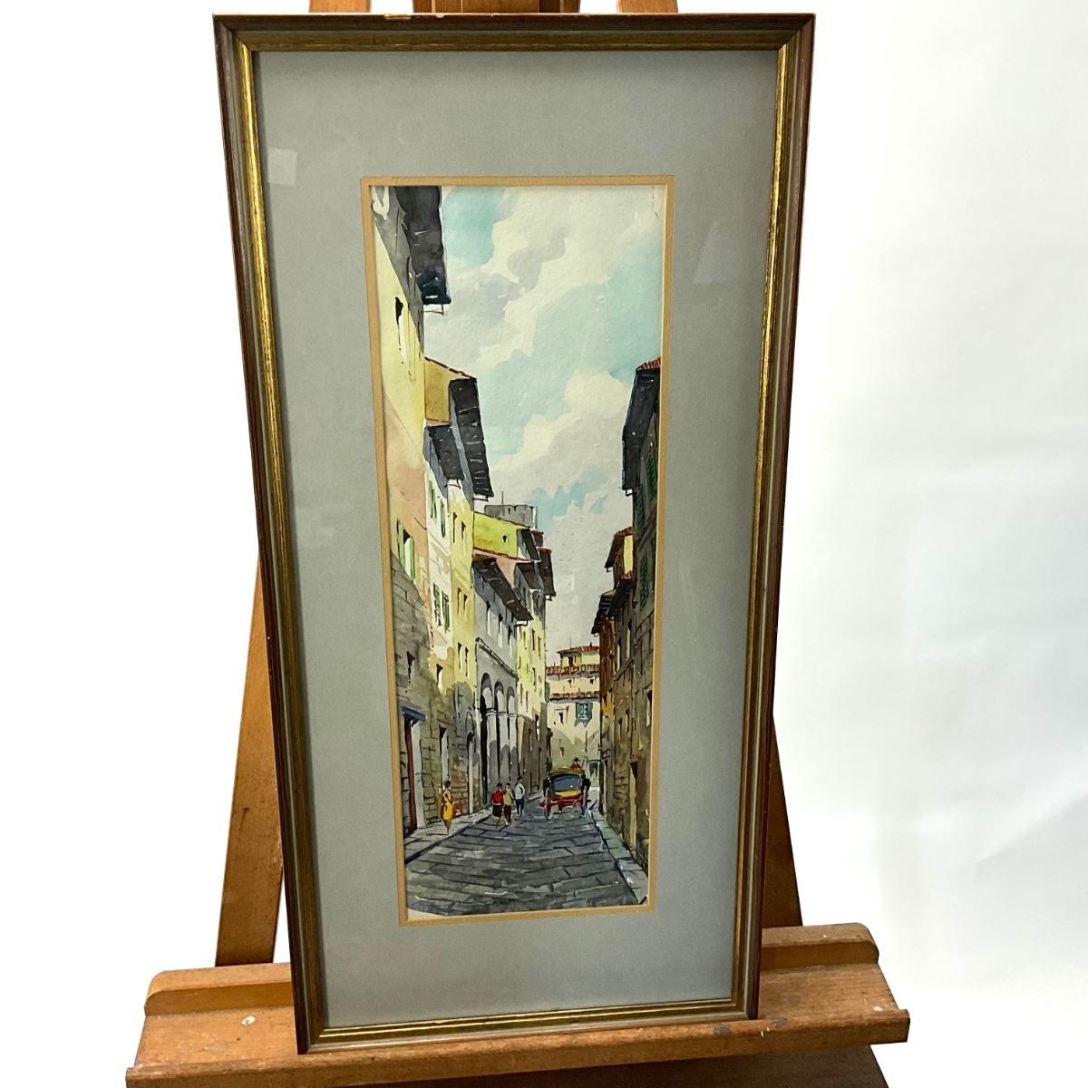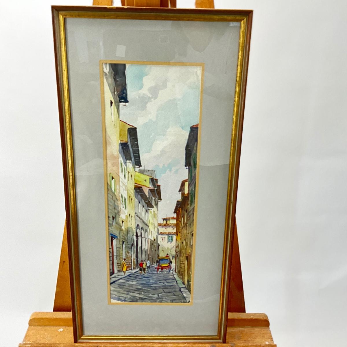 The watercolor is signed, Florence Italy, Signed by Lucien Delarue?, it measures 13" wide x 27" high.