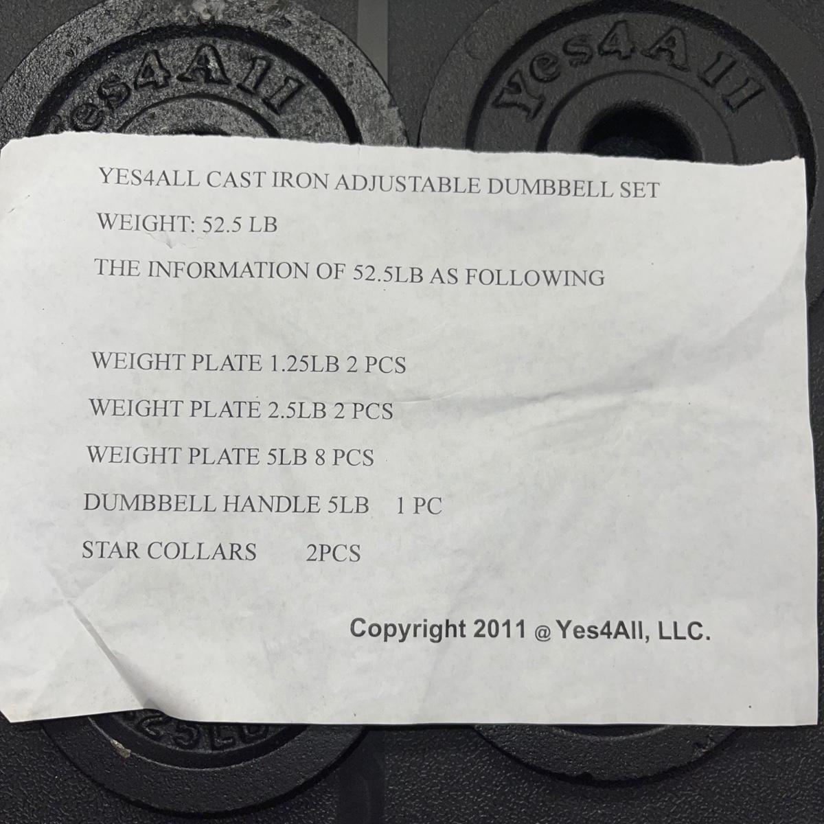 1920 Cast Iron Dumbbell Total Weight 52.5lbs Brand “Yes4All” New In-Box