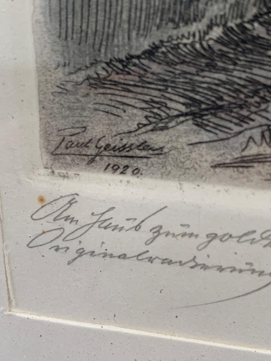 Signed Paul Geissler 1920 Original Etching Street Scene Framed