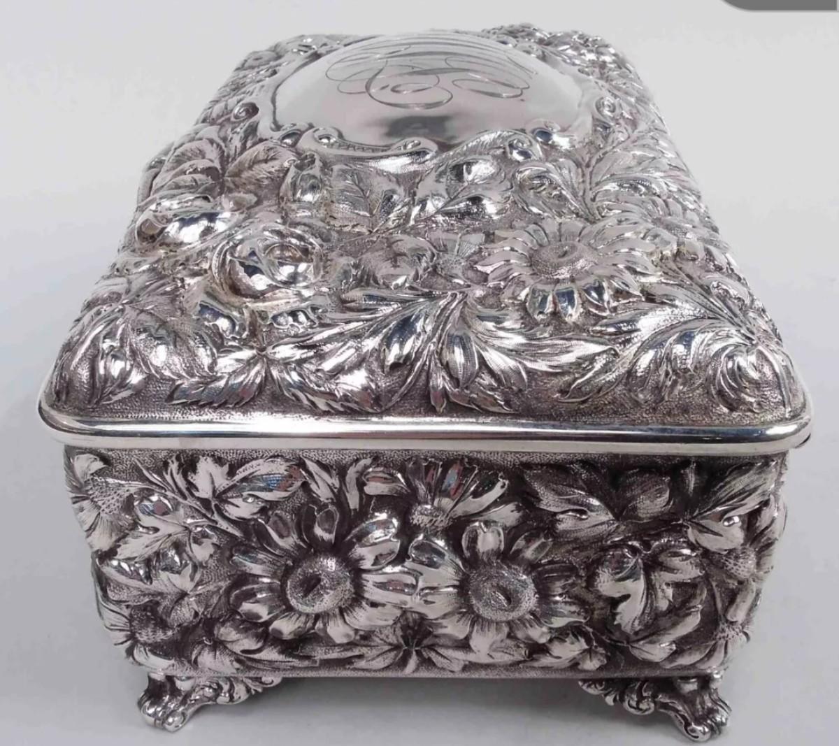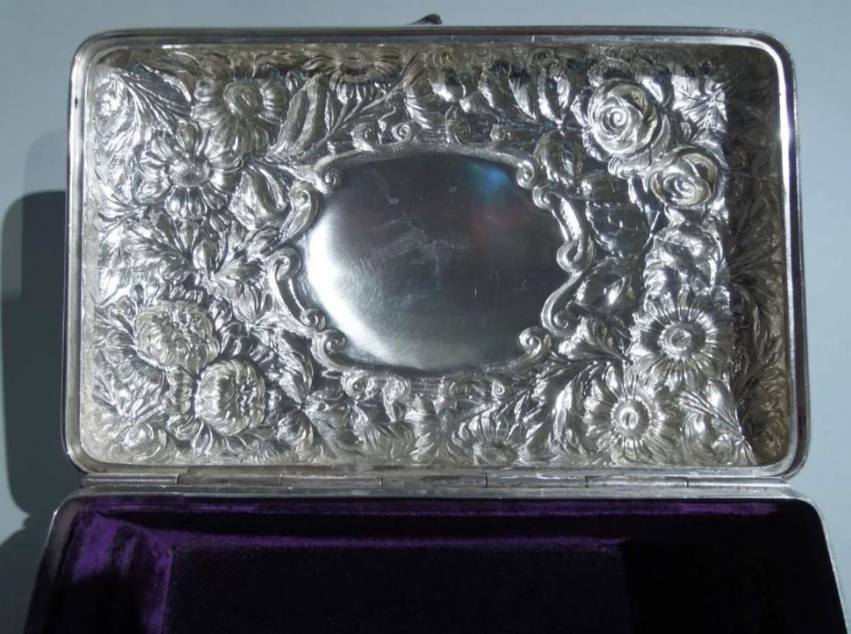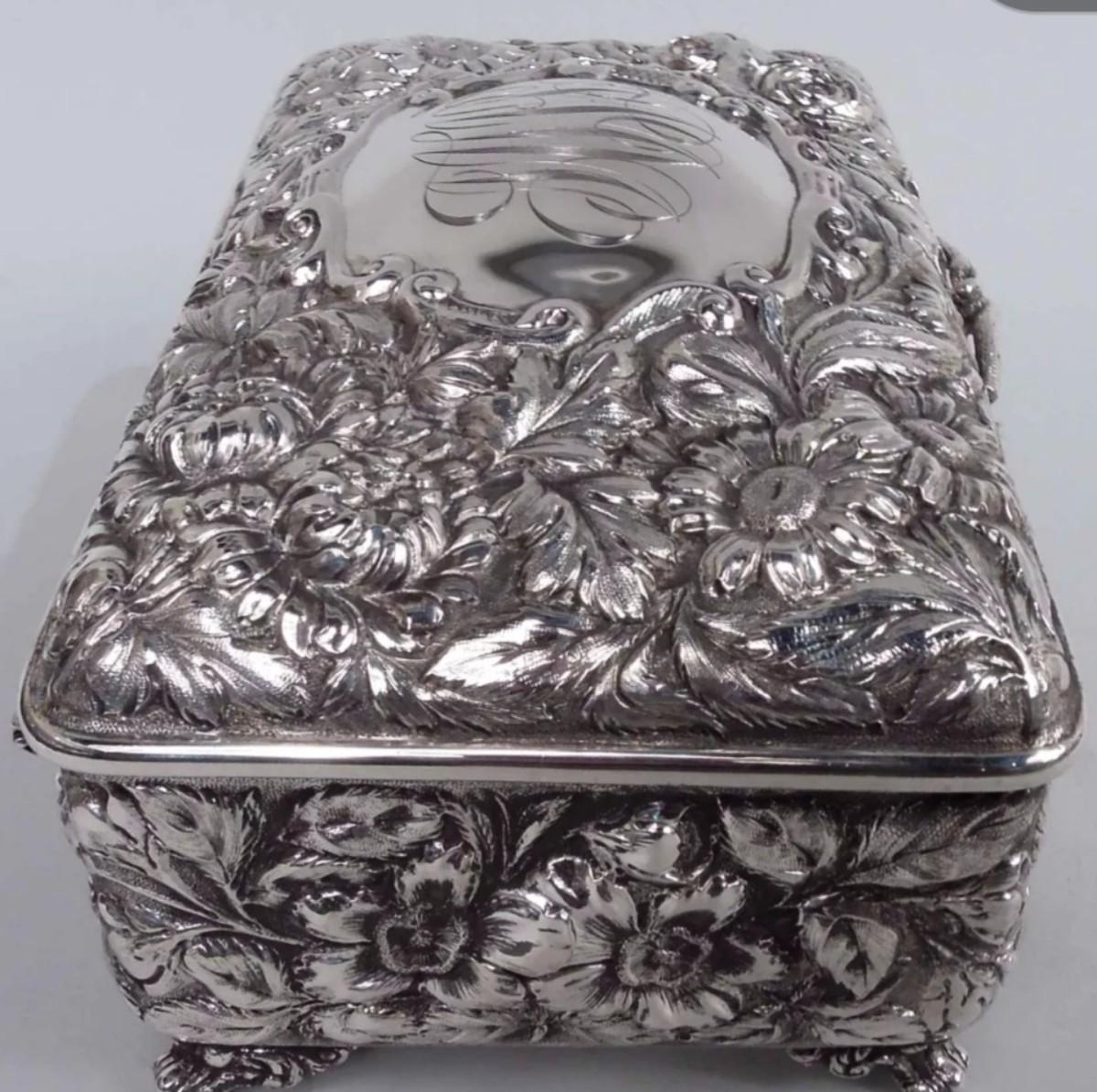 1920 sterling silver heavy ornate box 575 g Reserve set $