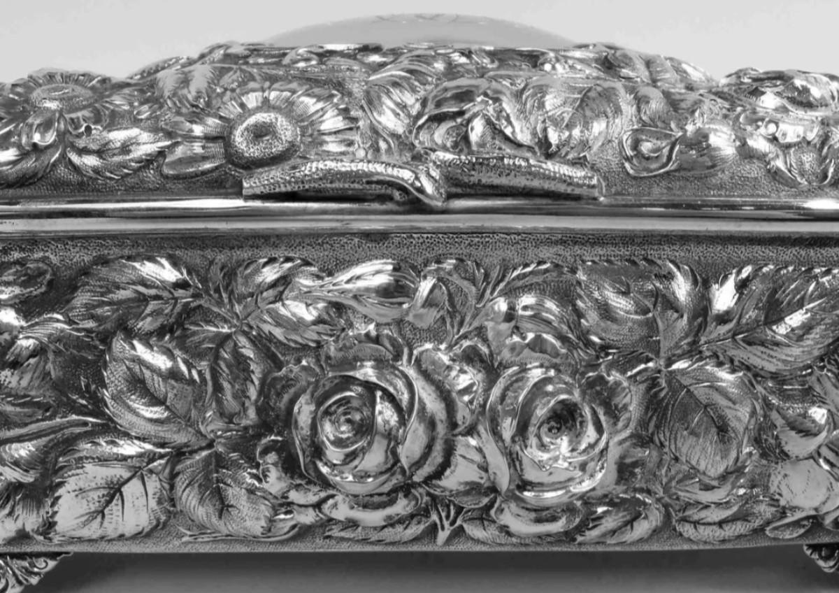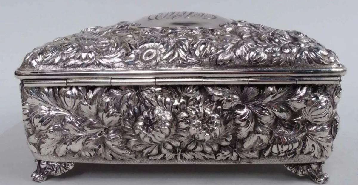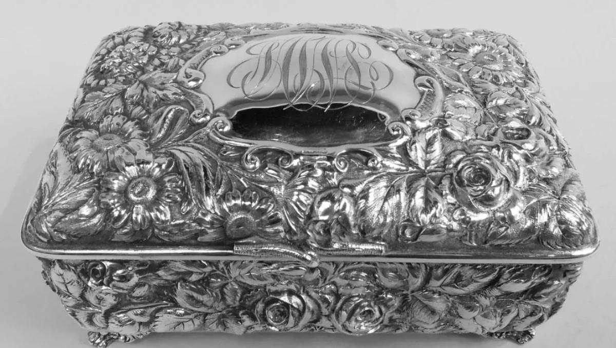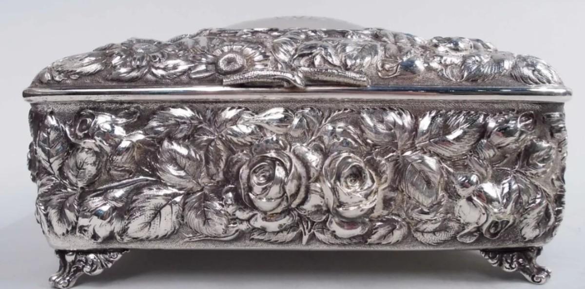 1920 sterling silver heavy ornate box 575 g Reserve set $